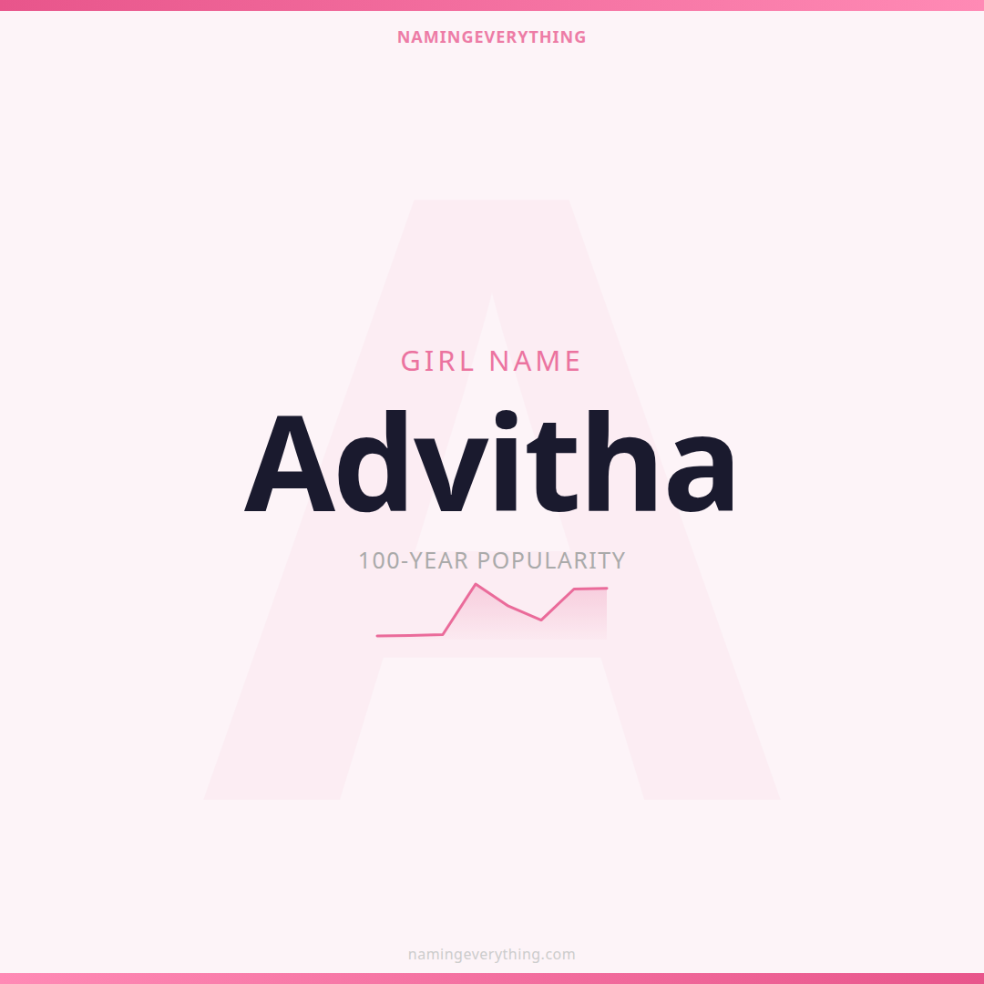 Download a shareable image with Advitha's meaning, origin, and popularity. Ready for Instagram, Pinterest, or texting to your partner.