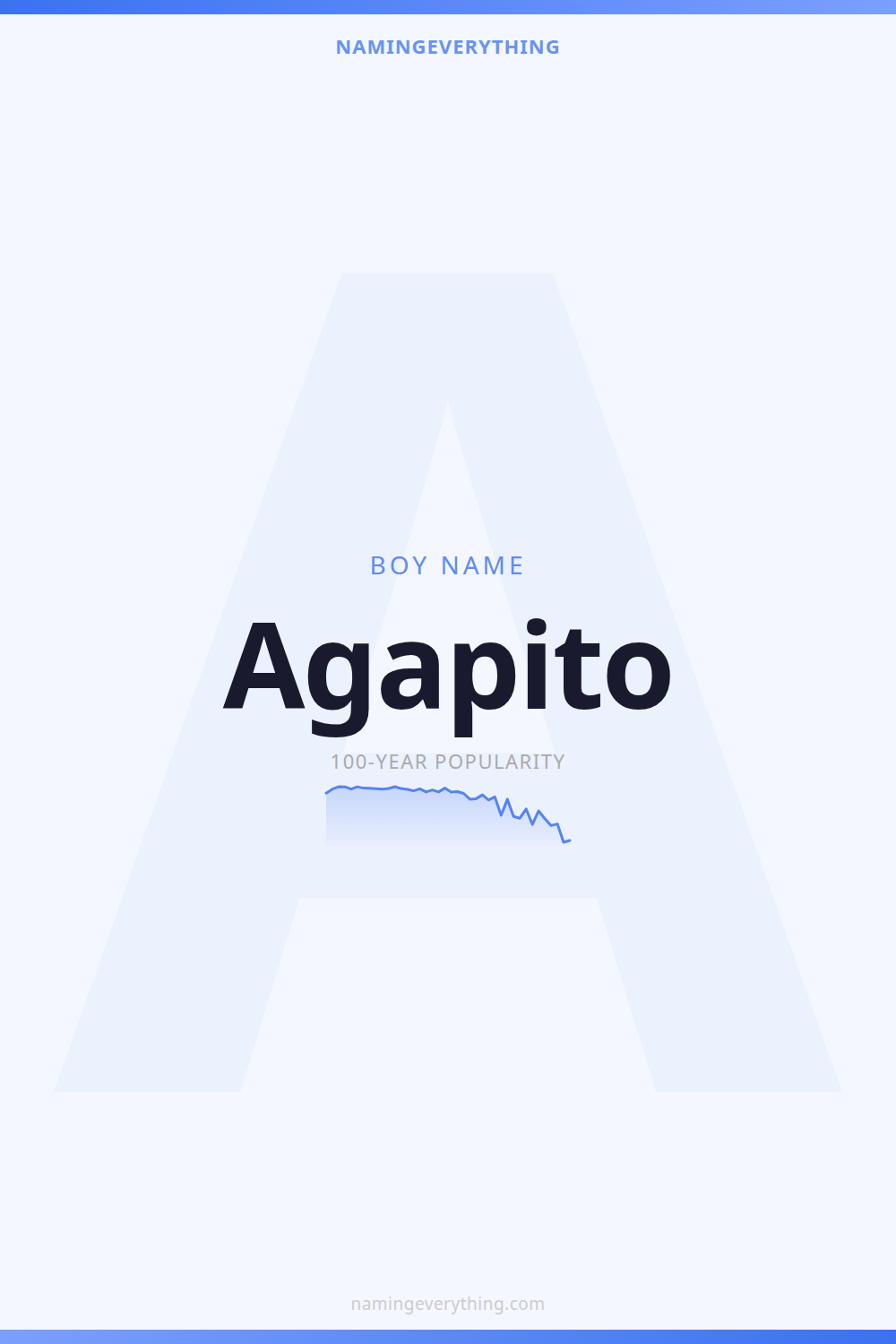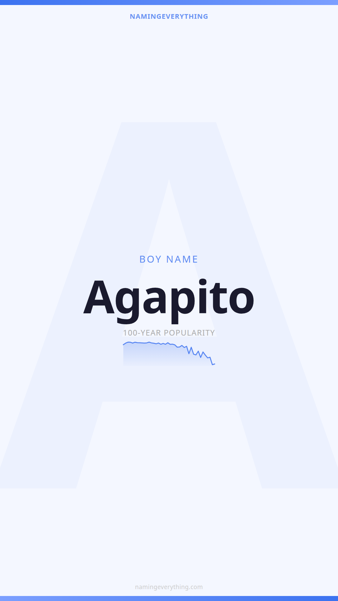 Download a shareable image with Agapito's meaning, origin, and popularity. Ready for Instagram, Pinterest, or texting to your partner.