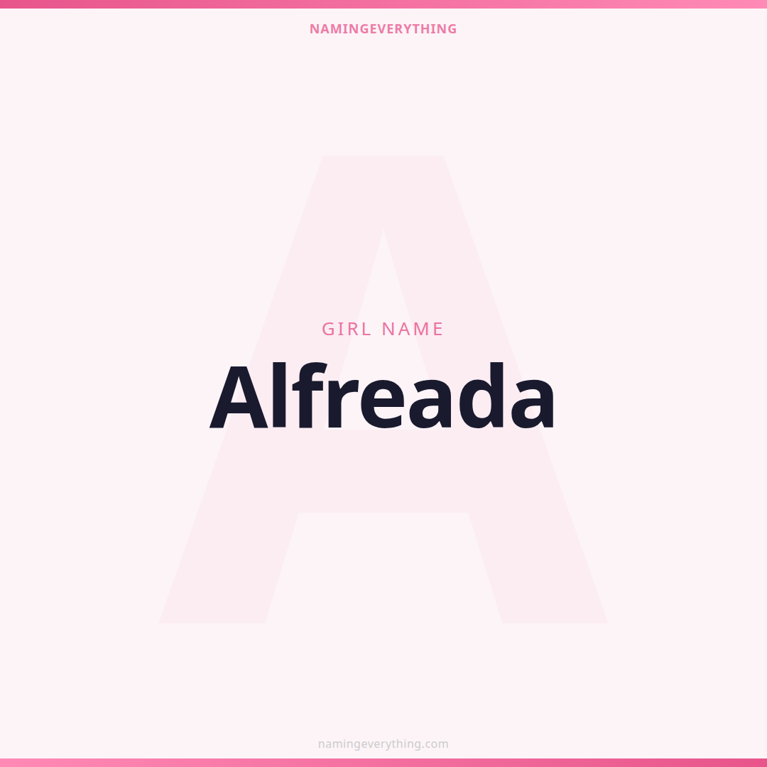 Download a shareable image with Alfreada's meaning, origin, and popularity. Ready for Instagram, Pinterest, or texting to your partner.