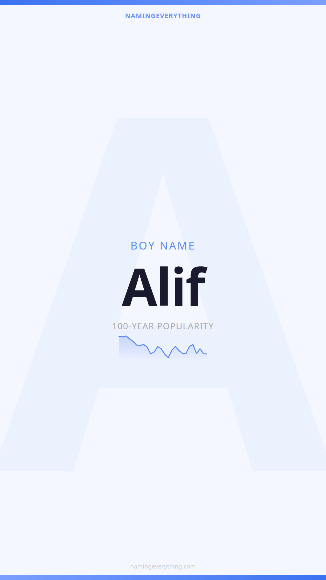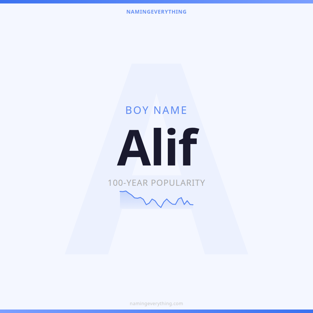 Download a shareable image with Alif's meaning, origin, and popularity. Ready for Instagram, Pinterest, or texting to your partner.