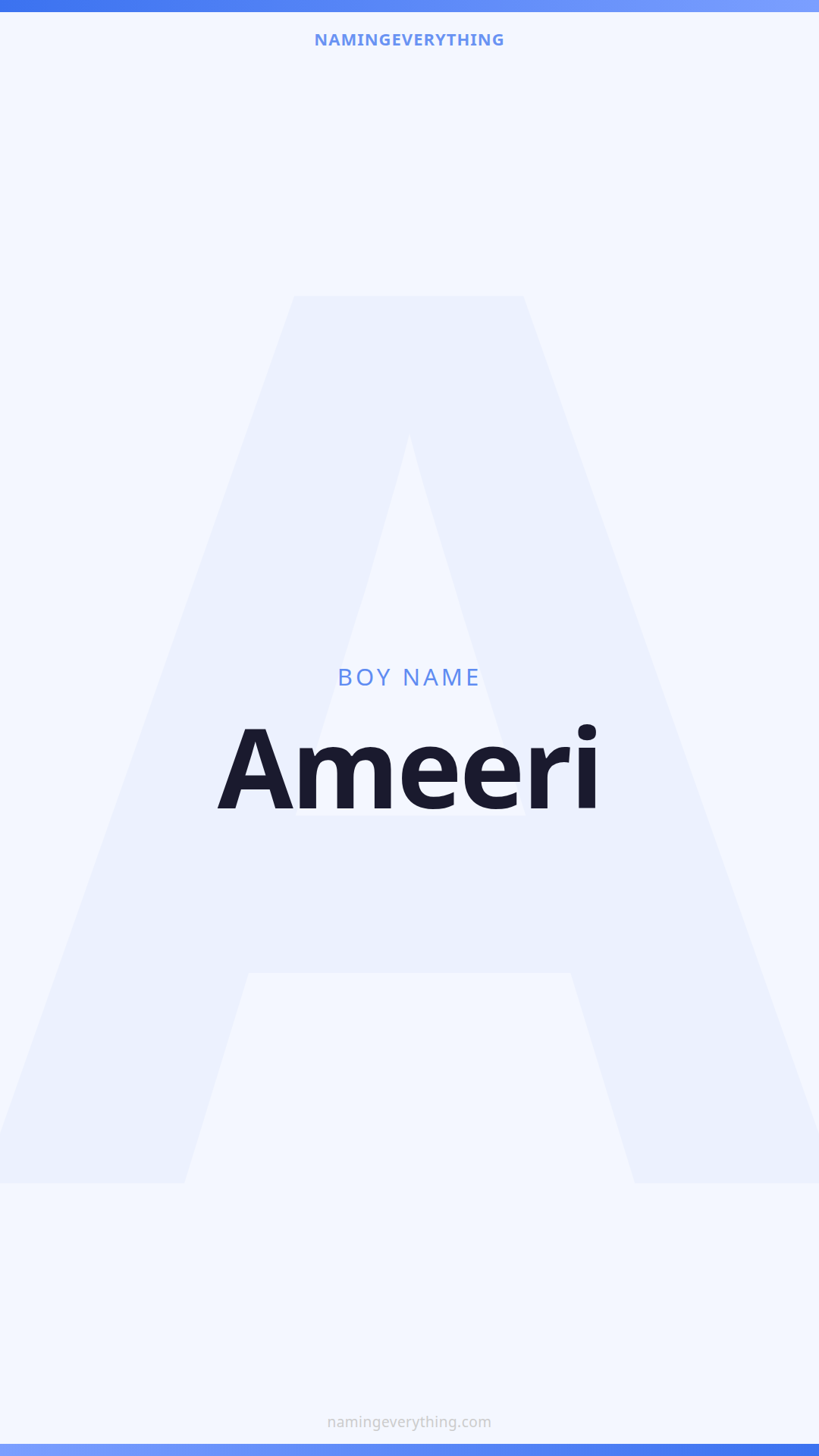 Download a shareable image with Ameeri's meaning, origin, and popularity. Ready for Instagram, Pinterest, or texting to your partner.