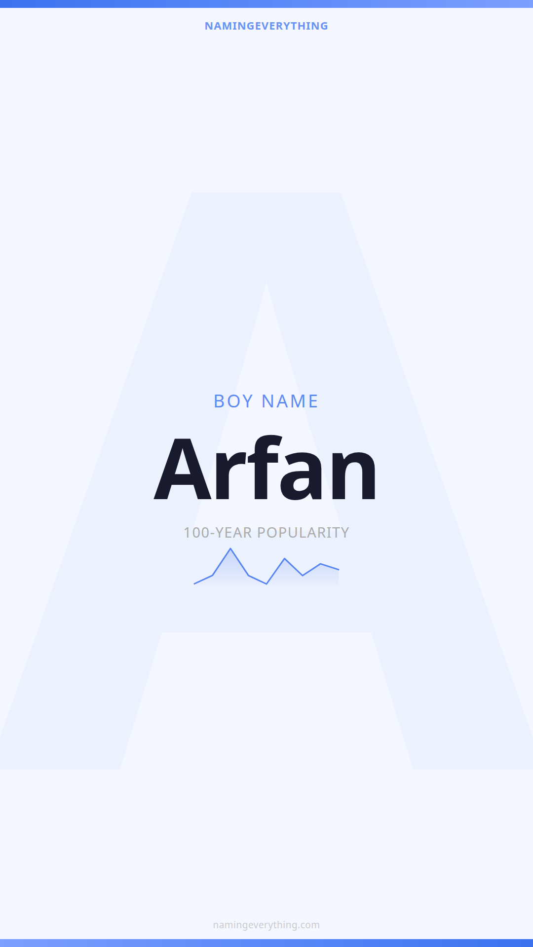Download a shareable image with Arfan's meaning, origin, and popularity. Ready for Instagram, Pinterest, or texting to your partner.
