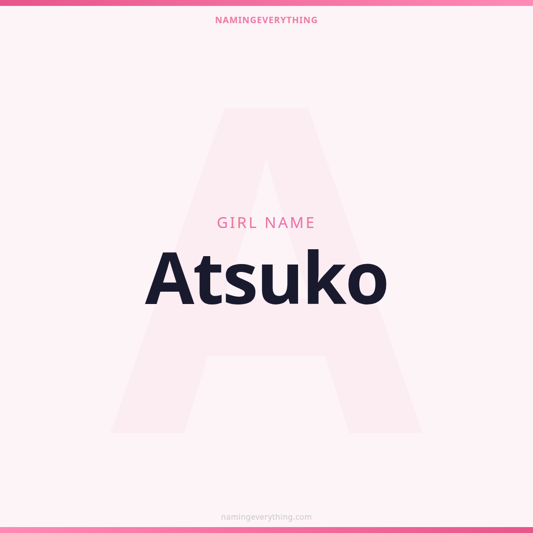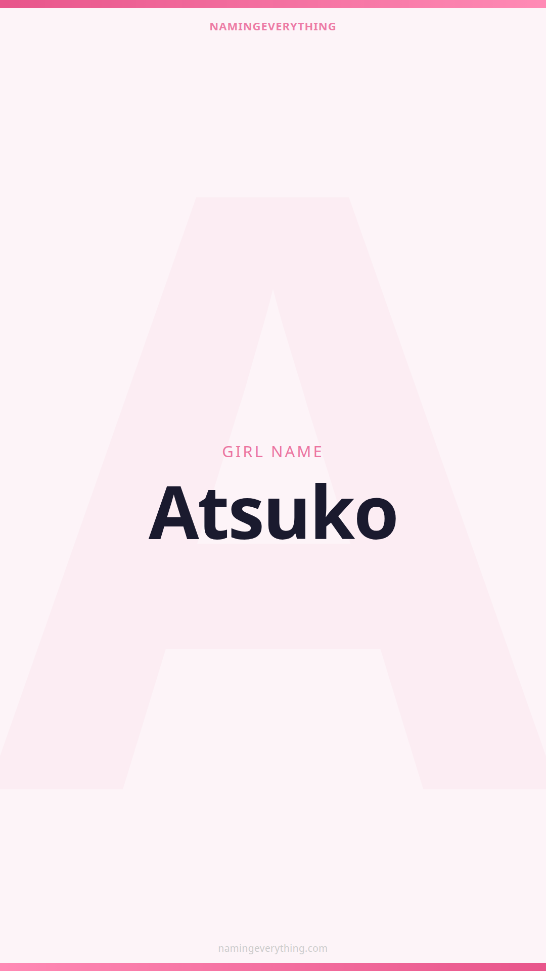 Download a shareable image with Atsuko's meaning, origin, and popularity. Ready for Instagram, Pinterest, or texting to your partner.