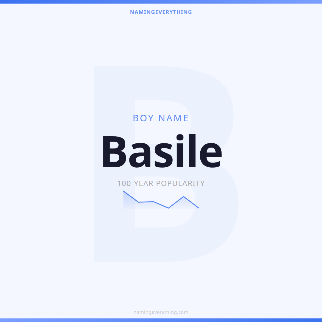 Download a shareable image with Basile's meaning, origin, and popularity. Ready for Instagram, Pinterest, or texting to your partner.