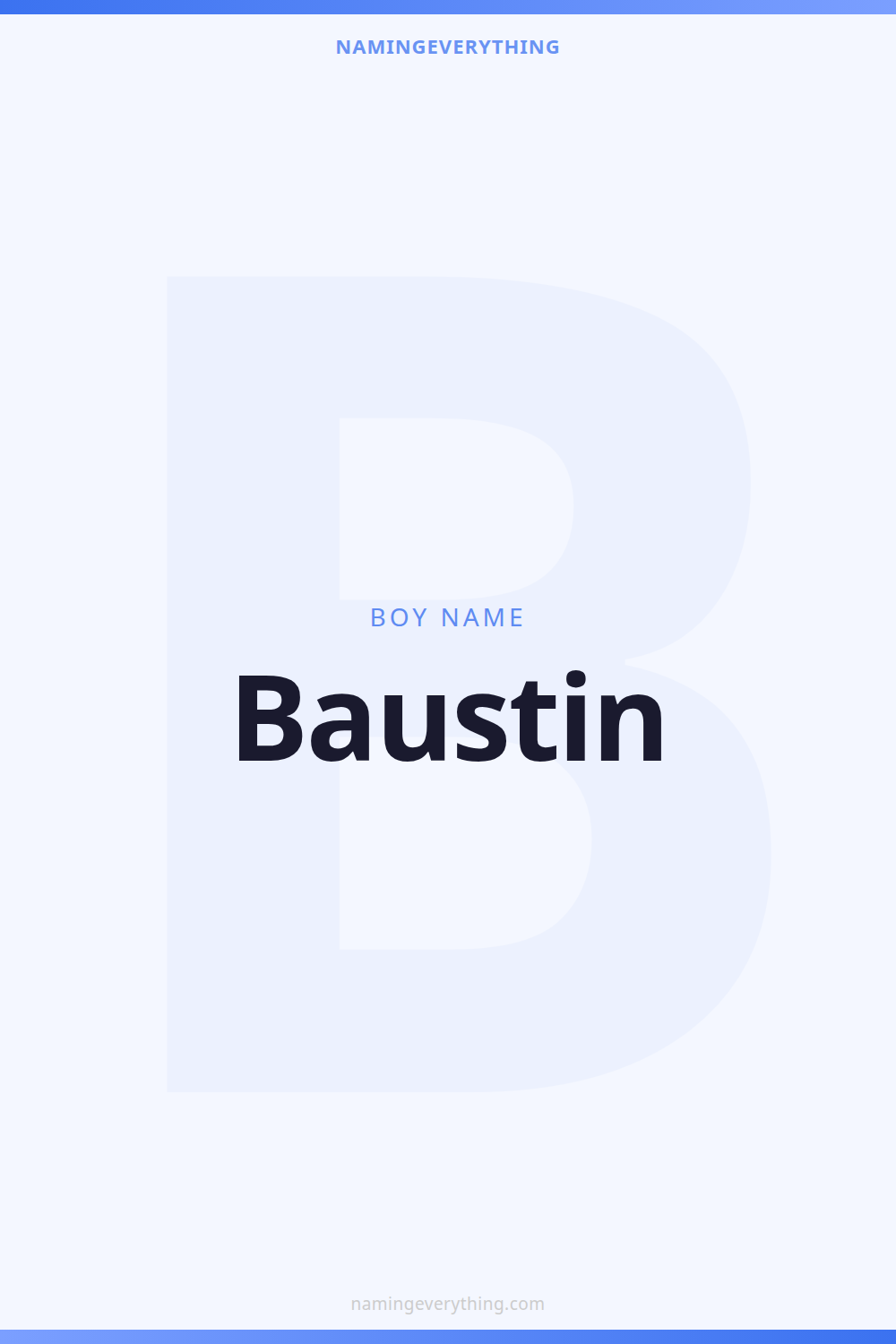 Download a shareable image with Baustin's meaning, origin, and popularity. Ready for Instagram, Pinterest, or texting to your partner.