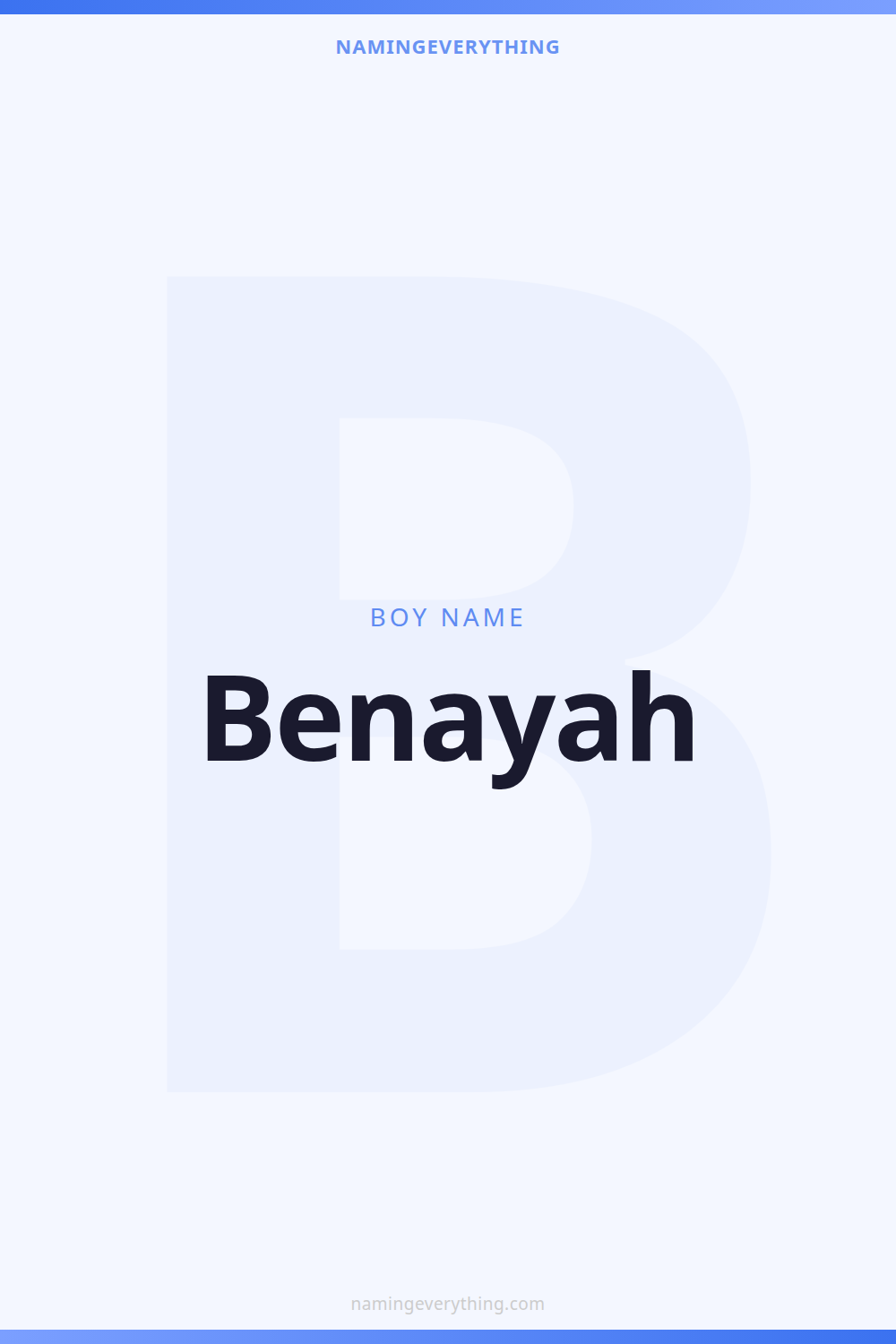 Download a shareable image with Benayah's meaning, origin, and popularity. Ready for Instagram, Pinterest, or texting to your partner.