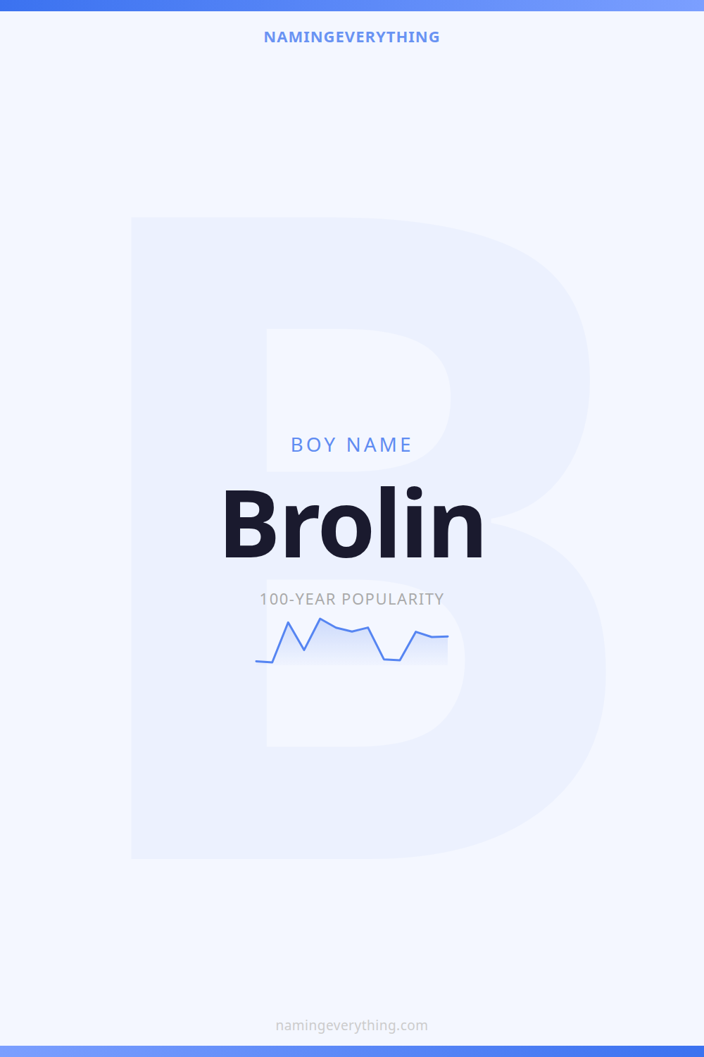 Download a shareable image with Brolin's meaning, origin, and popularity. Ready for Instagram, Pinterest, or texting to your partner.