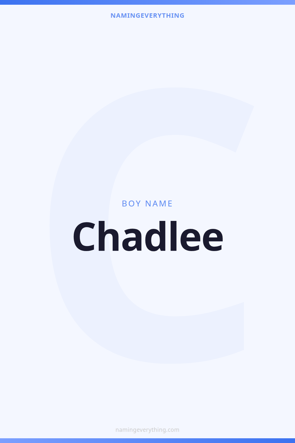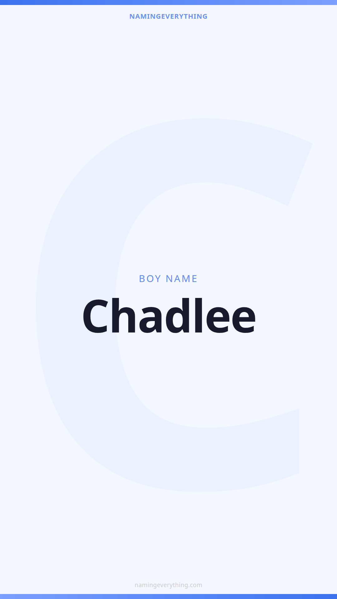 Download a shareable image with Chadlee's meaning, origin, and popularity. Ready for Instagram, Pinterest, or texting to your partner.