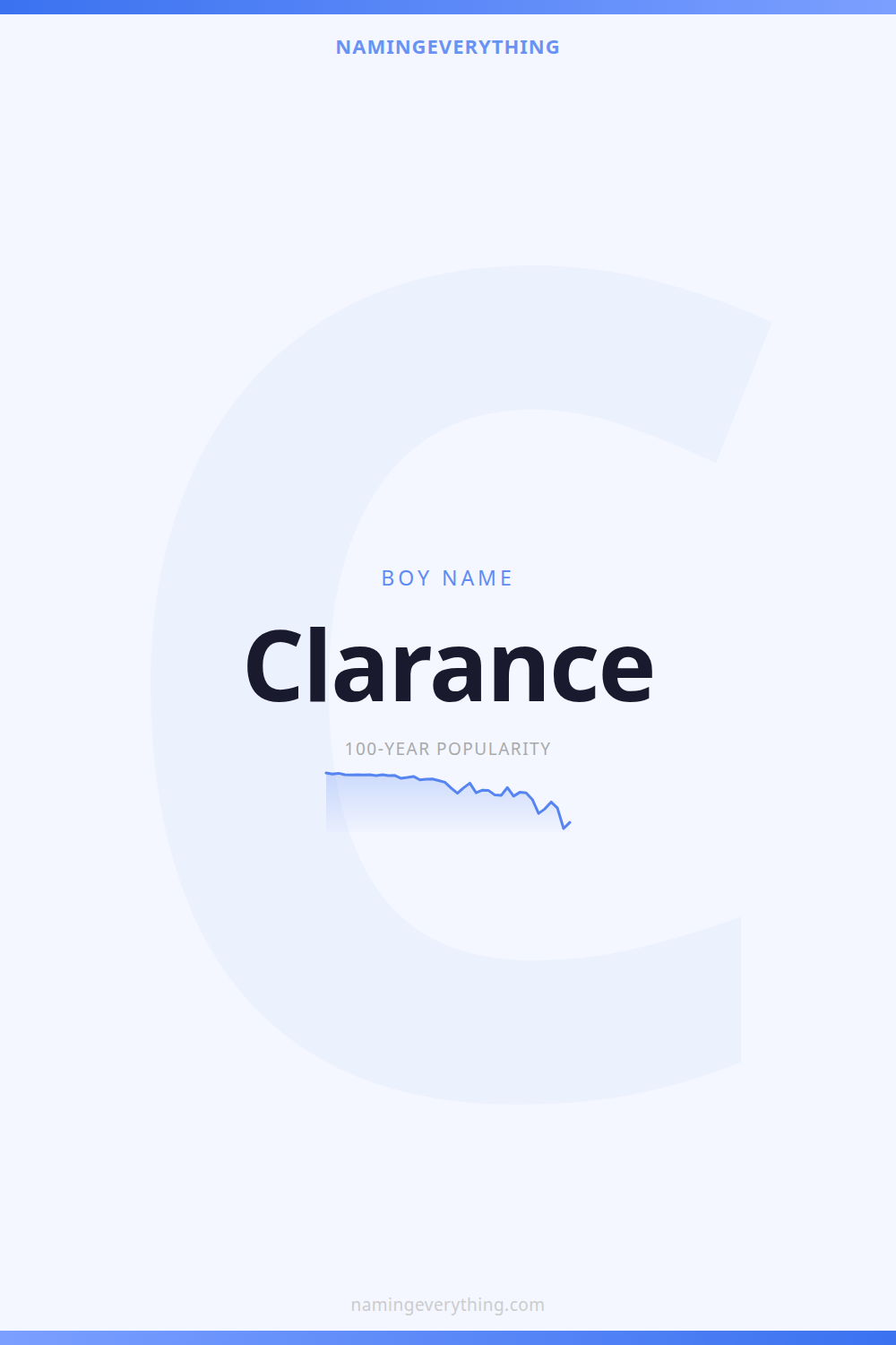 Download a shareable image with Clarance's meaning, origin, and popularity. Ready for Instagram, Pinterest, or texting to your partner.