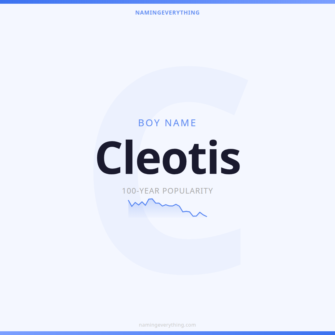 Download a shareable image with Cleotis's meaning, origin, and popularity. Ready for Instagram, Pinterest, or texting to your partner.