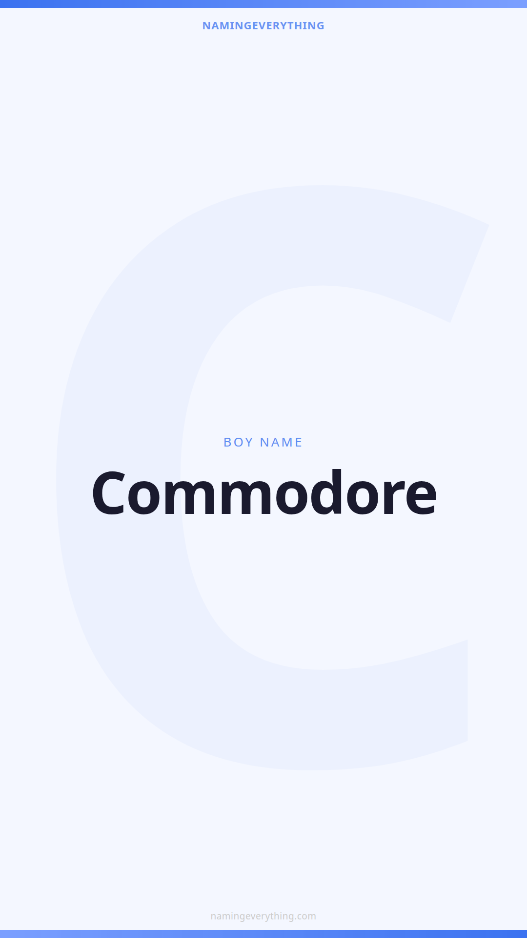 Download a shareable image with Commodore's meaning, origin, and popularity. Ready for Instagram, Pinterest, or texting to your partner.