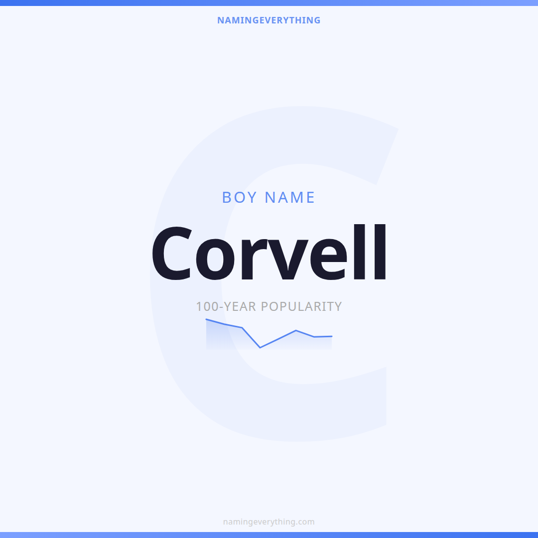 Download a shareable image with Corvell's meaning, origin, and popularity. Ready for Instagram, Pinterest, or texting to your partner.