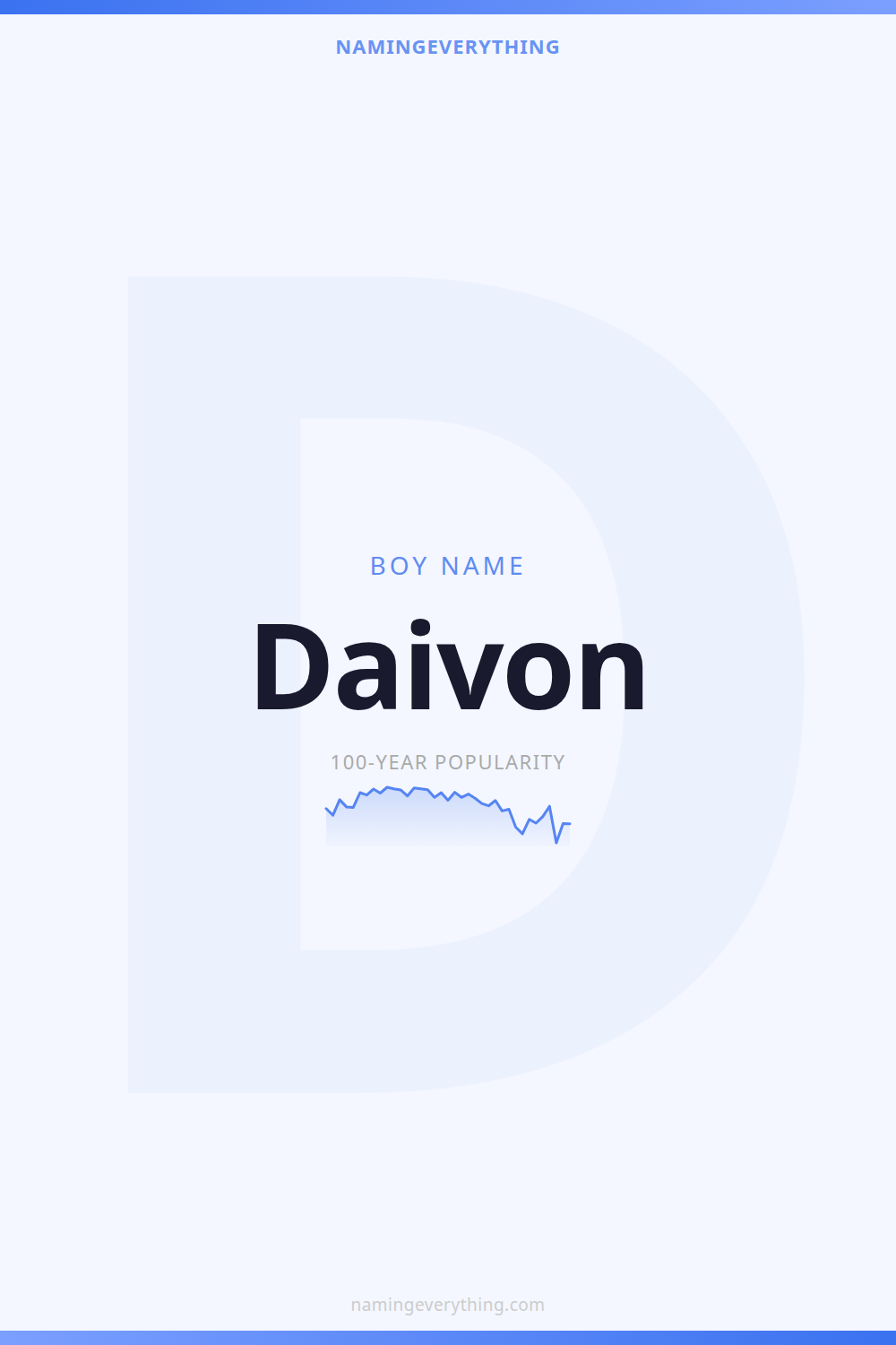 Download a shareable image with Daivon's meaning, origin, and popularity. Ready for Instagram, Pinterest, or texting to your partner.