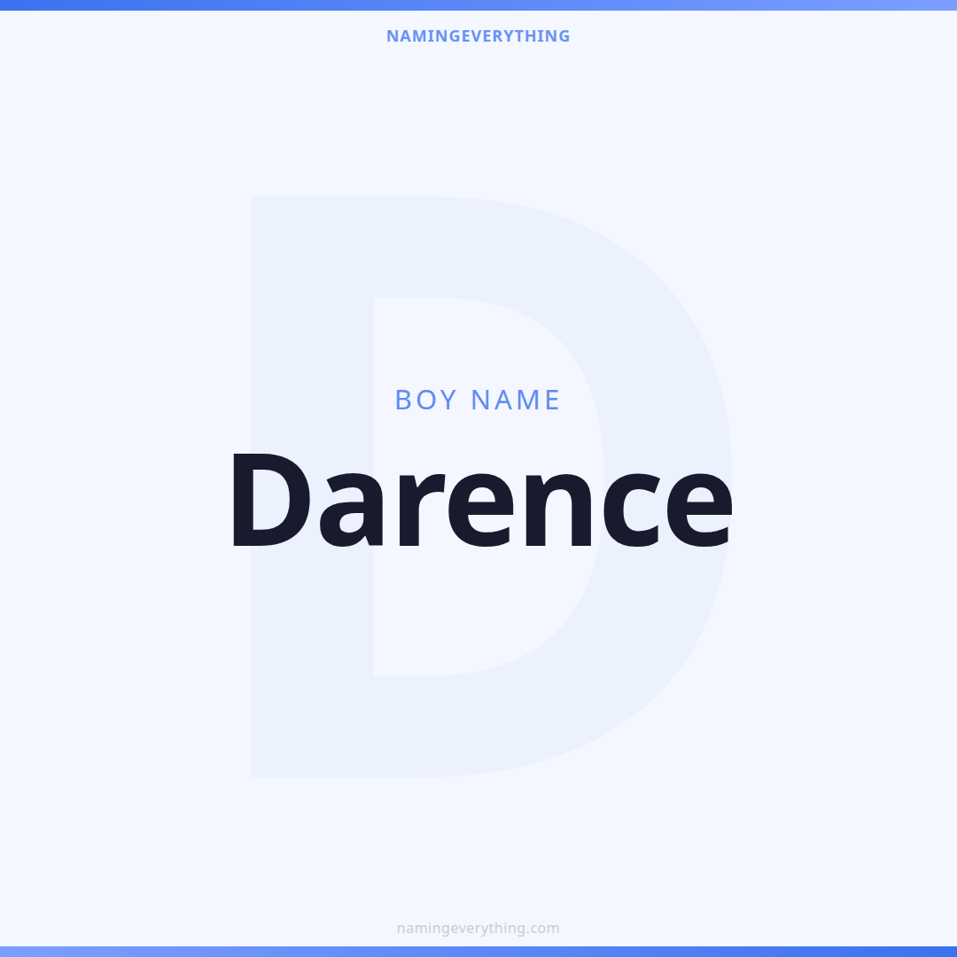Alternative spellings of Darence include Darell, Daren, Darey, Darek . Each spelling variation gives the name a slightly different character while preserving its sound and meaning.