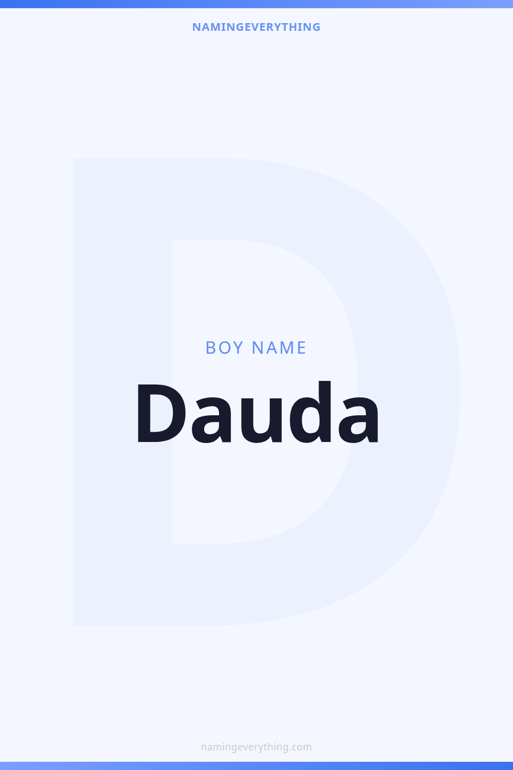 Download a shareable image with Dauda's meaning, origin, and popularity. Ready for Instagram, Pinterest, or texting to your partner.