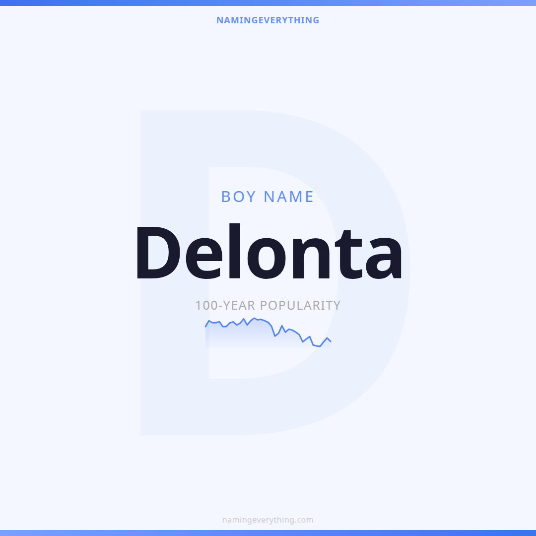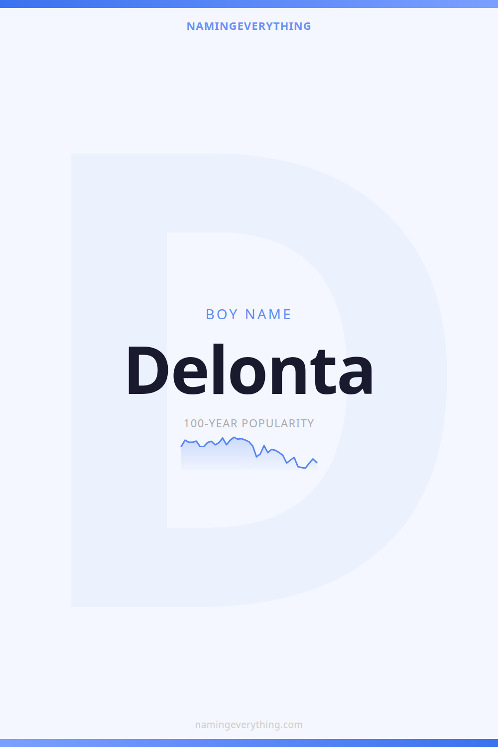 Download a shareable image with Delonta's meaning, origin, and popularity. Ready for Instagram, Pinterest, or texting to your partner.