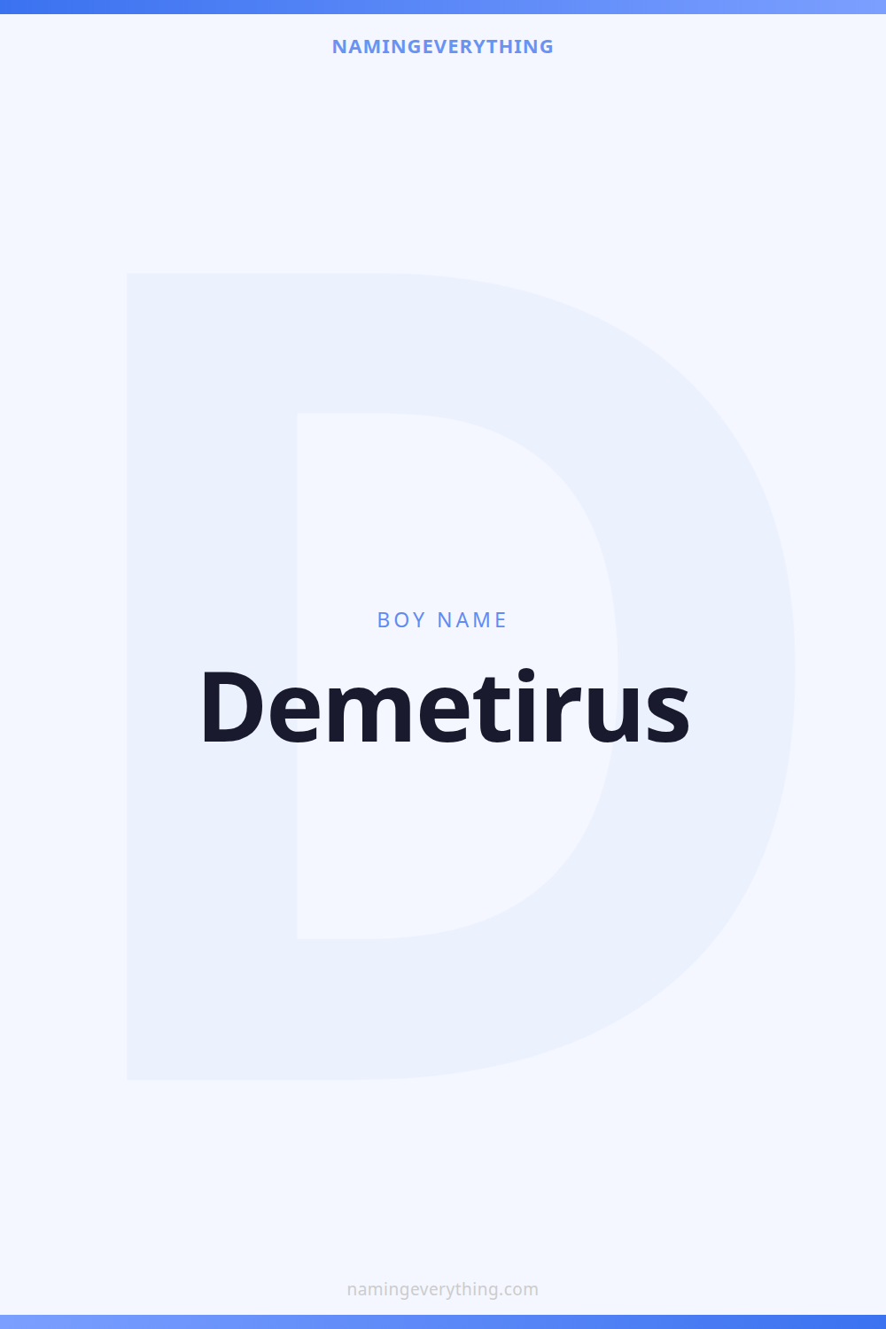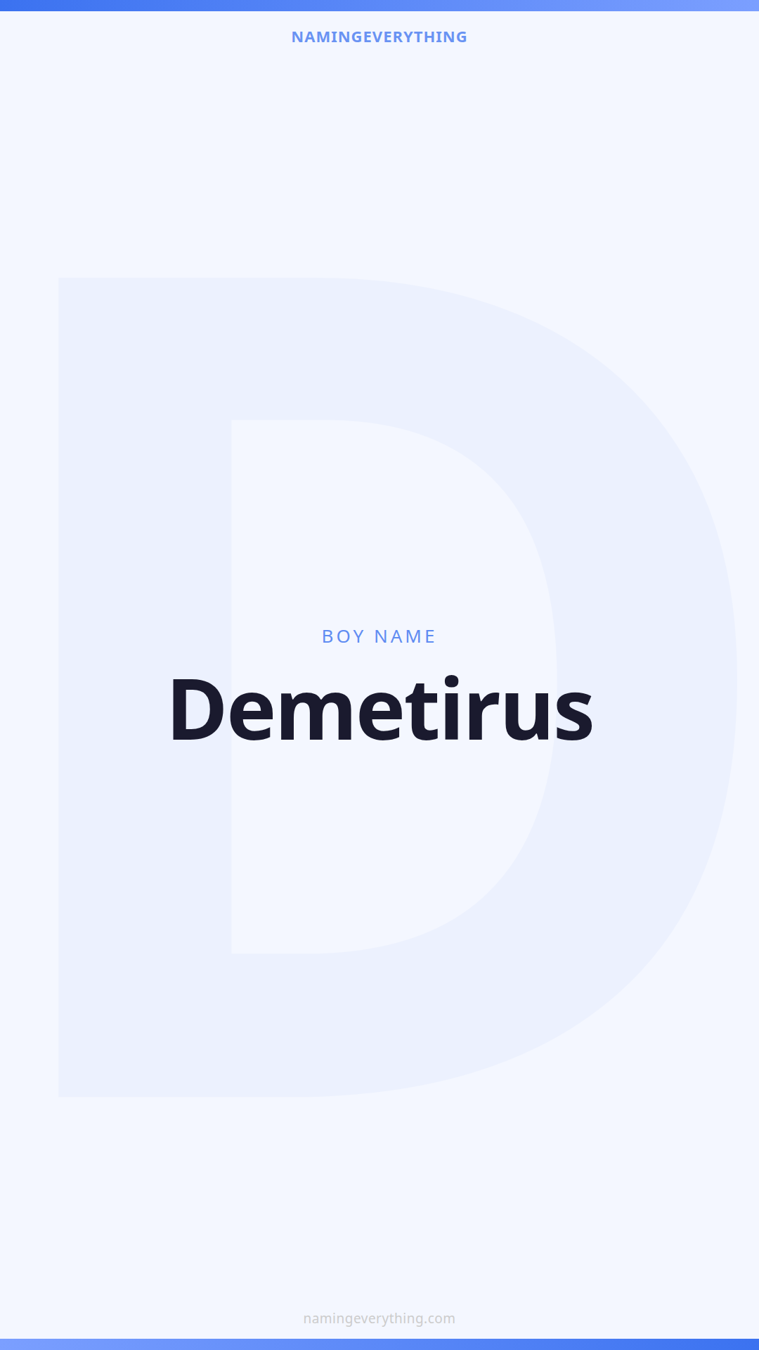 Download a shareable image with Demetirus's meaning, origin, and popularity. Ready for Instagram, Pinterest, or texting to your partner.