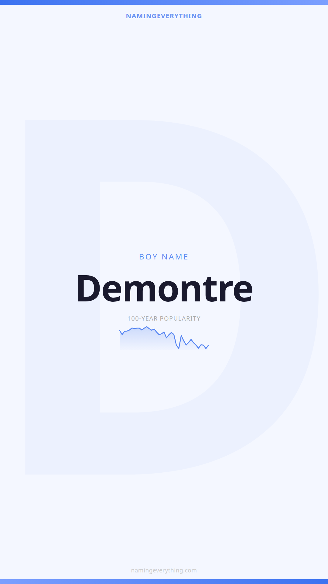 Download a shareable image with Demontre's meaning, origin, and popularity. Ready for Instagram, Pinterest, or texting to your partner.