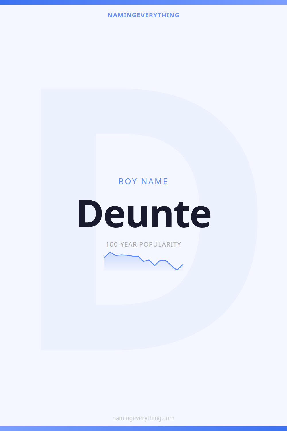 Download a shareable image with Deunte's meaning, origin, and popularity. Ready for Instagram, Pinterest, or texting to your partner.
