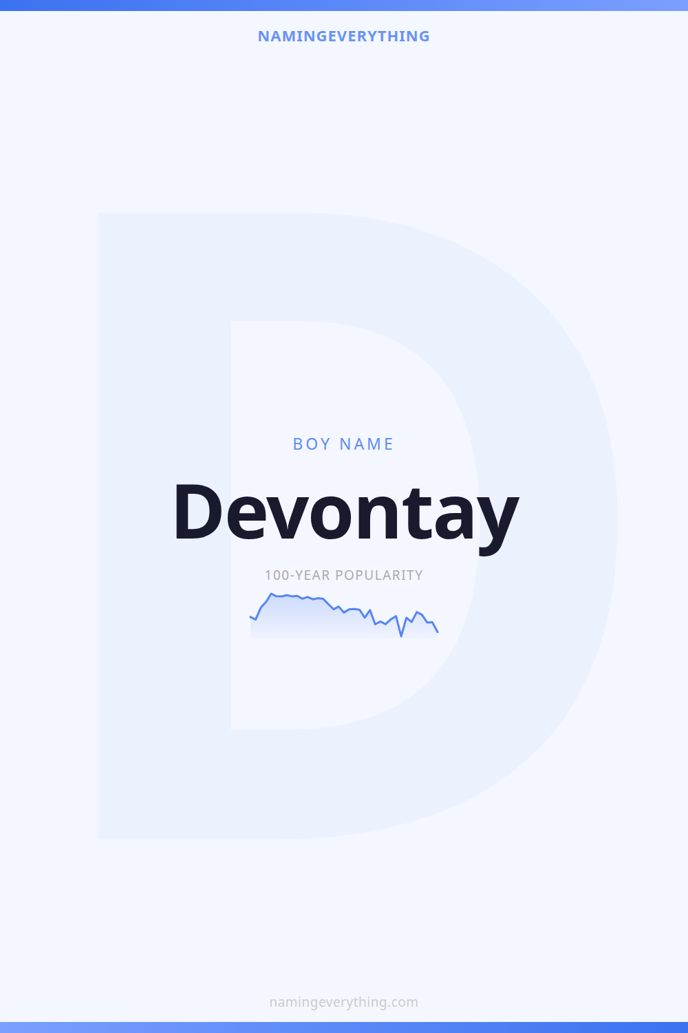 Download a shareable image with Devontay's meaning, origin, and popularity. Ready for Instagram, Pinterest, or texting to your partner.