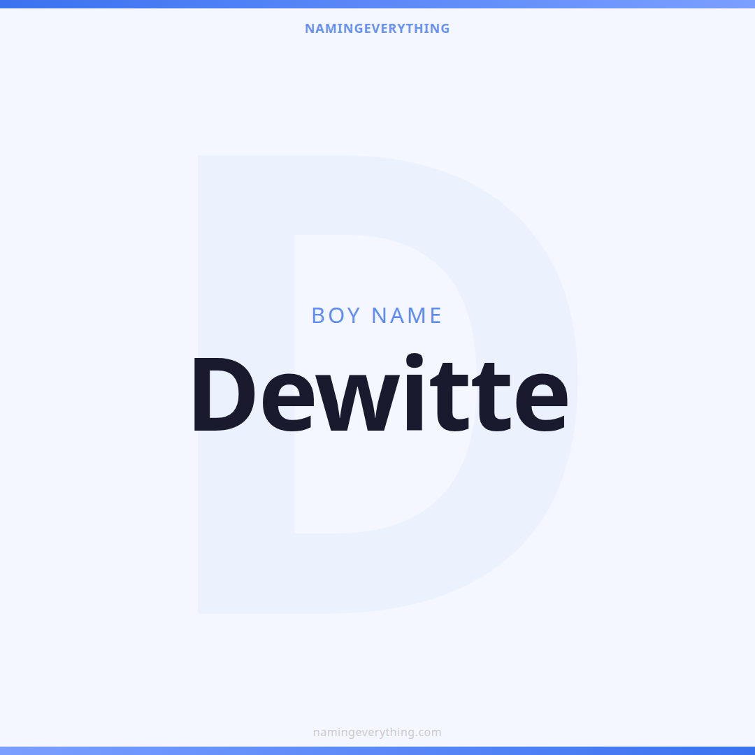 Common nicknames for Dewitte include Dew, Dey, Dewie, and Dewiie. These shorter forms provide casual alternatives while keeping the elegance of the full name.