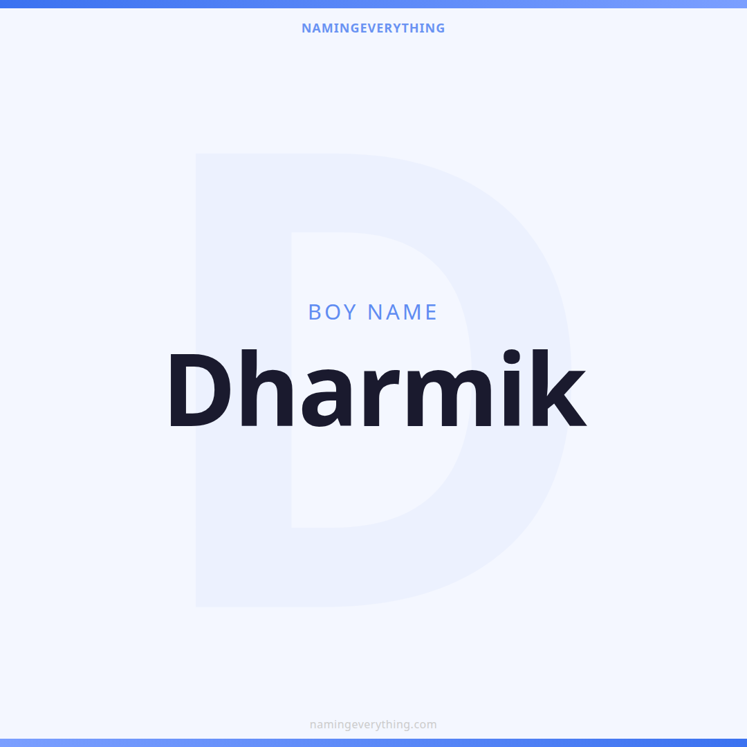 Download a shareable image with Dharmik's meaning, origin, and popularity. Ready for Instagram, Pinterest, or texting to your partner.