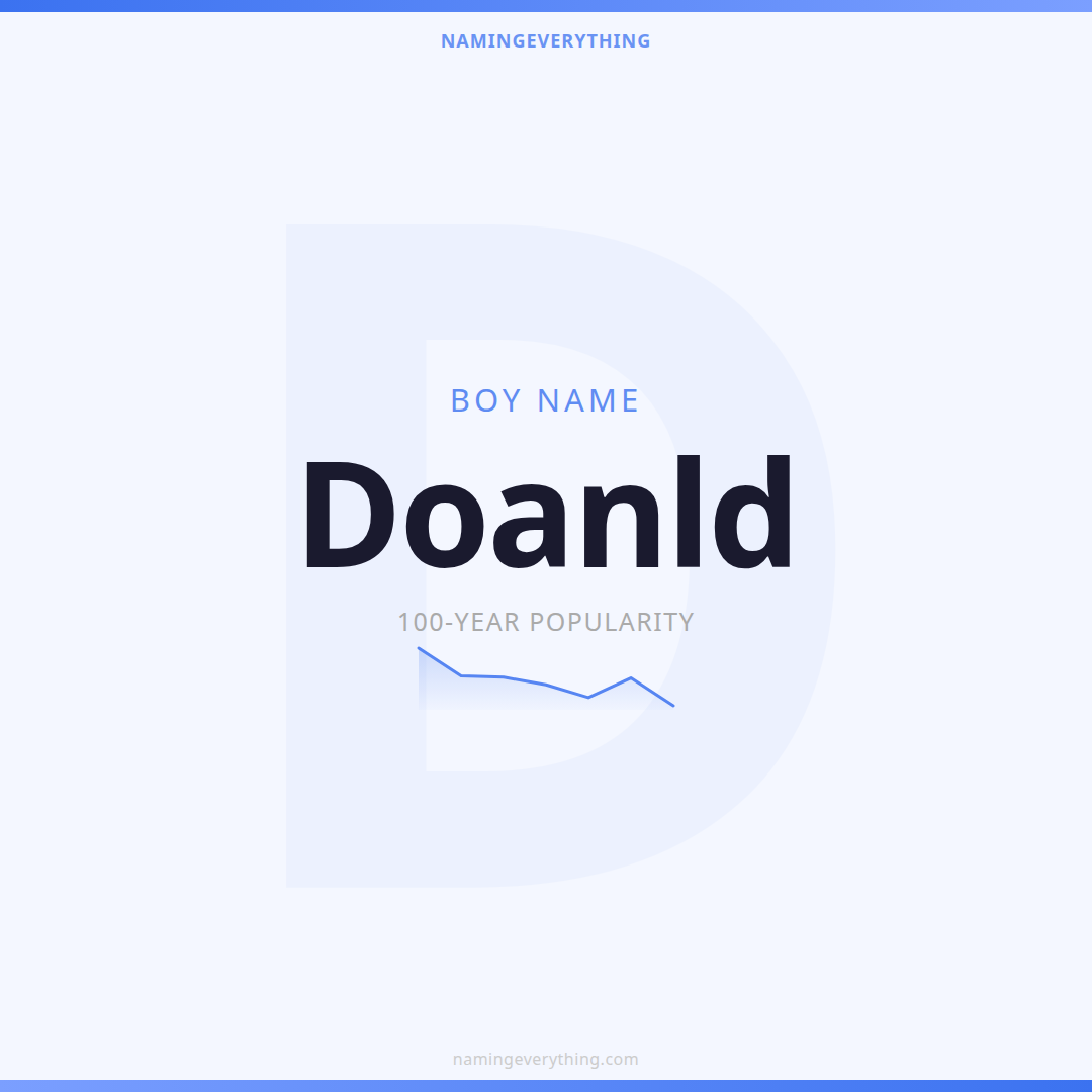Download a shareable image with Doanld's meaning, origin, and popularity. Ready for Instagram, Pinterest, or texting to your partner.