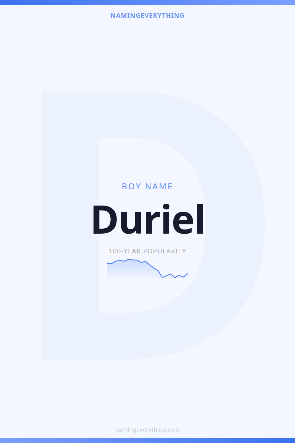 Download a shareable image with Duriel's meaning, origin, and popularity. Ready for Instagram, Pinterest, or texting to your partner.