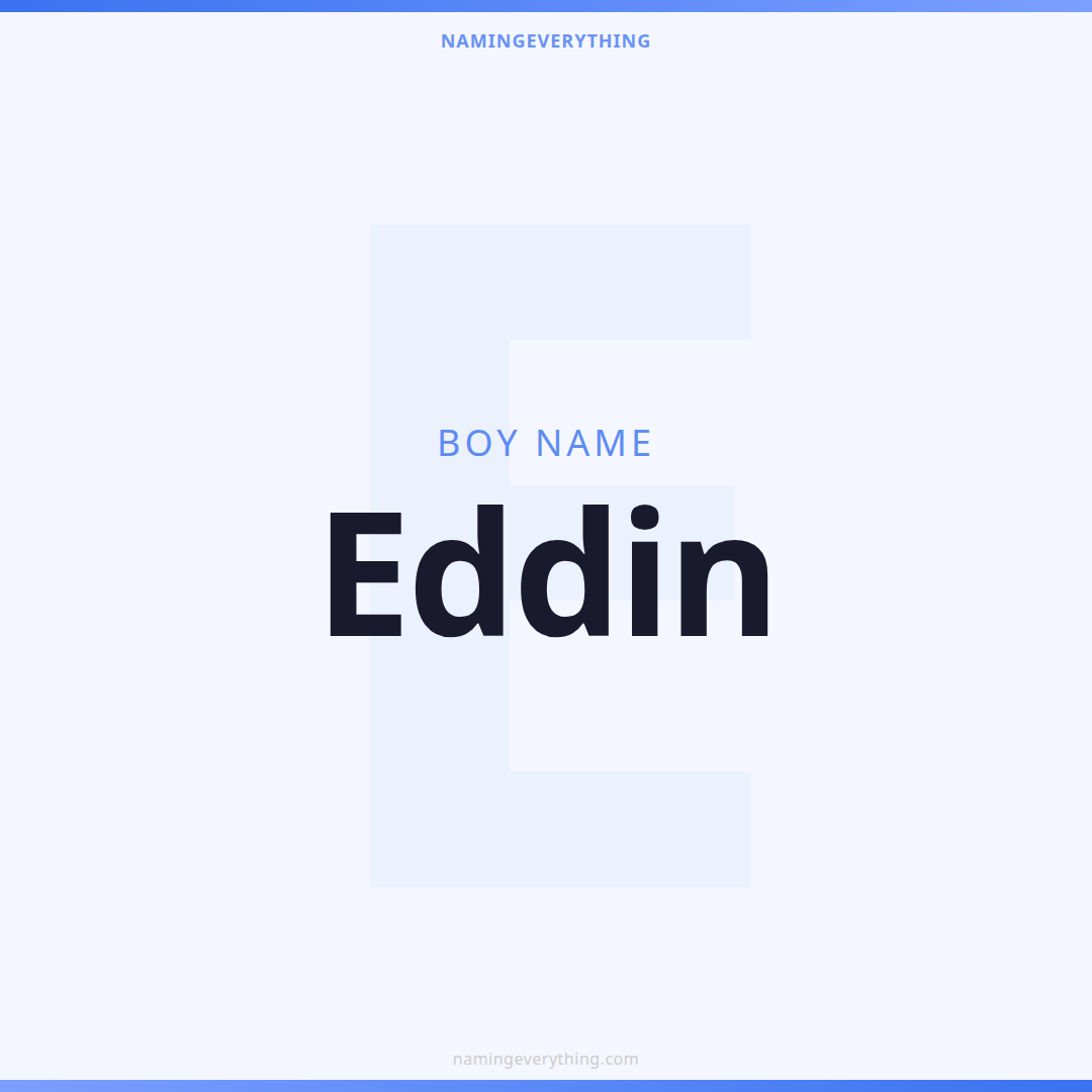 Download a shareable image with Eddin's meaning, origin, and popularity. Ready for Instagram, Pinterest, or texting to your partner.