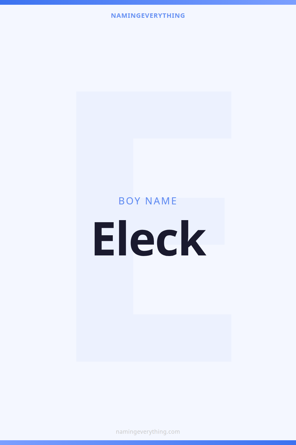 Download a shareable image with Eleck's meaning, origin, and popularity. Ready for Instagram, Pinterest, or texting to your partner.