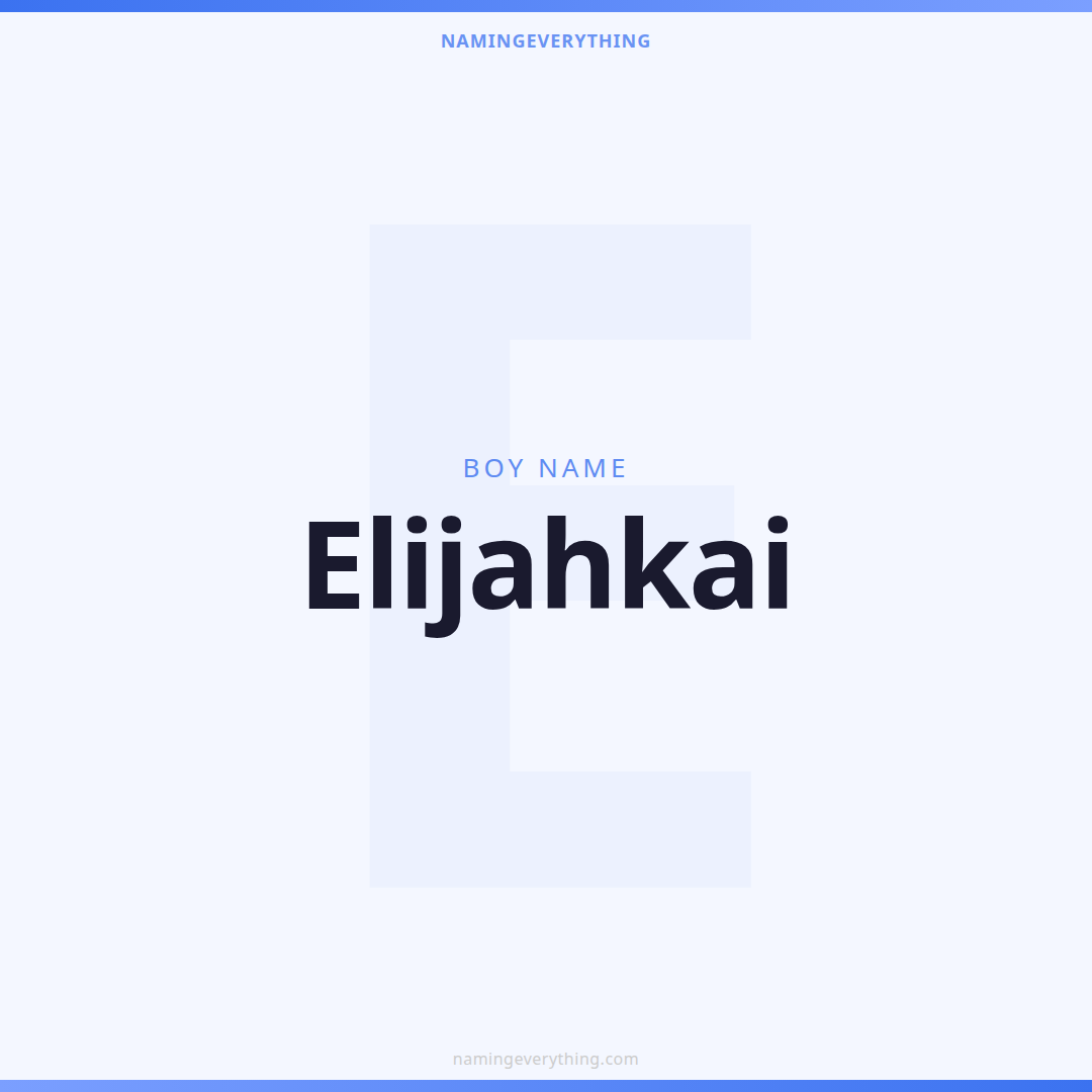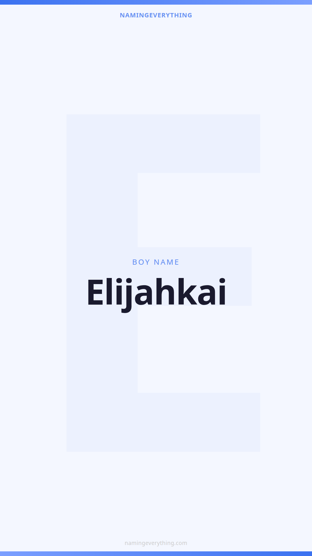 Download a shareable image with Elijahkai's meaning, origin, and popularity. Ready for Instagram, Pinterest, or texting to your partner.