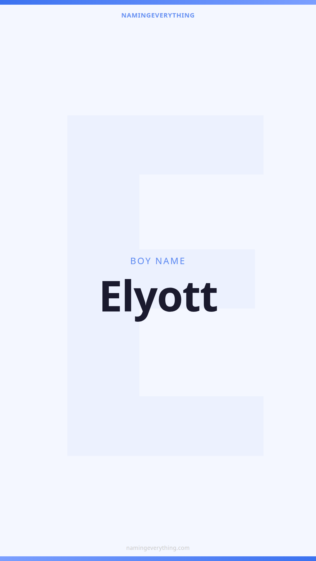 Download a shareable image with Elyott's meaning, origin, and popularity. Ready for Instagram, Pinterest, or texting to your partner.