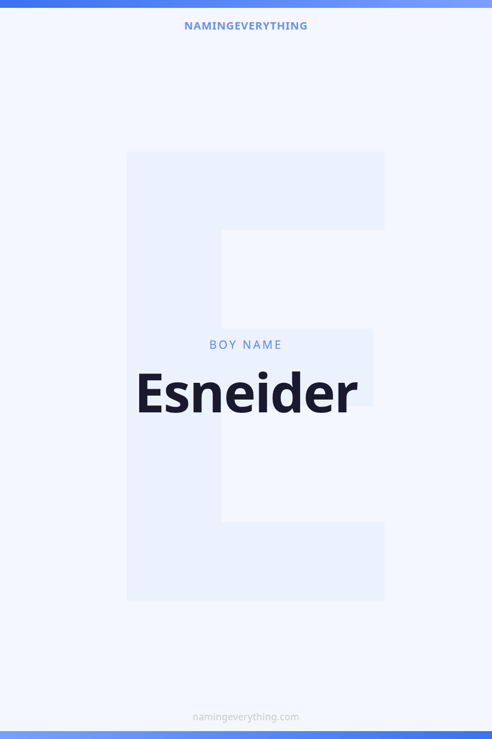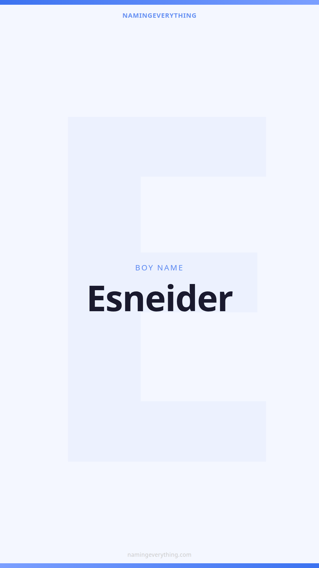 Download a shareable image with Esneider's meaning, origin, and popularity. Ready for Instagram, Pinterest, or texting to your partner.