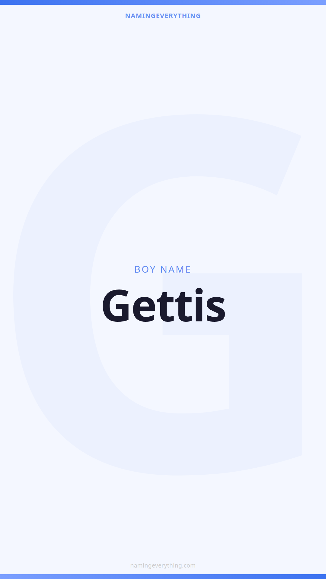 Download a shareable image with Gettis's meaning, origin, and popularity. Ready for Instagram, Pinterest, or texting to your partner.
