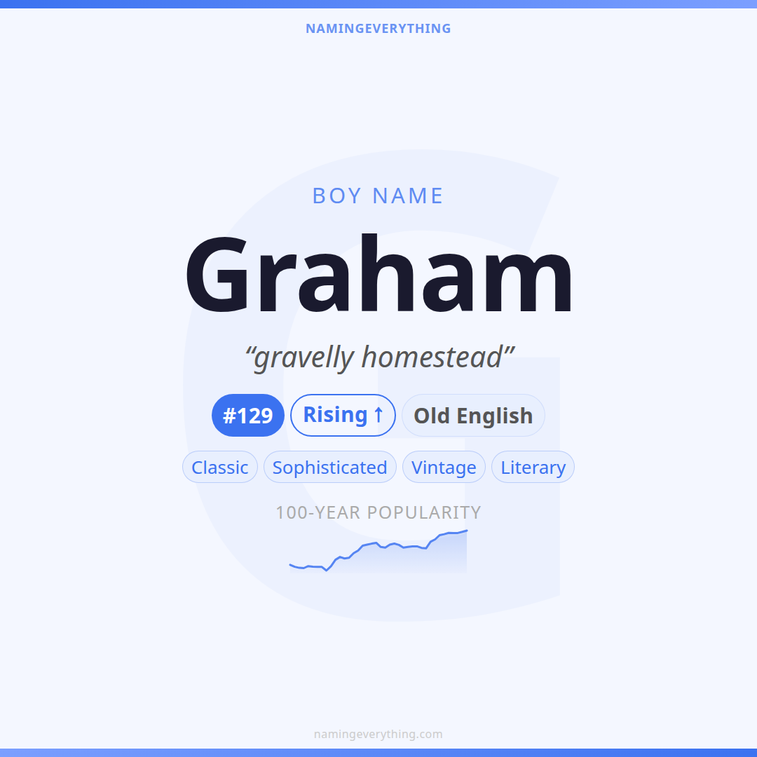 Download a shareable image with Graham's meaning, origin, and popularity. Ready for Instagram, Pinterest, or texting to your partner.