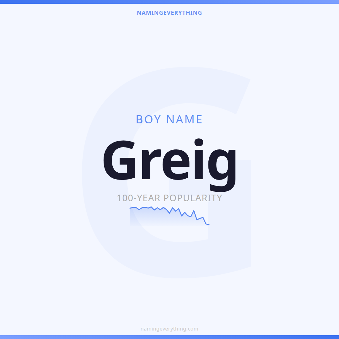 Download a shareable image with Greig's meaning, origin, and popularity. Ready for Instagram, Pinterest, or texting to your partner.