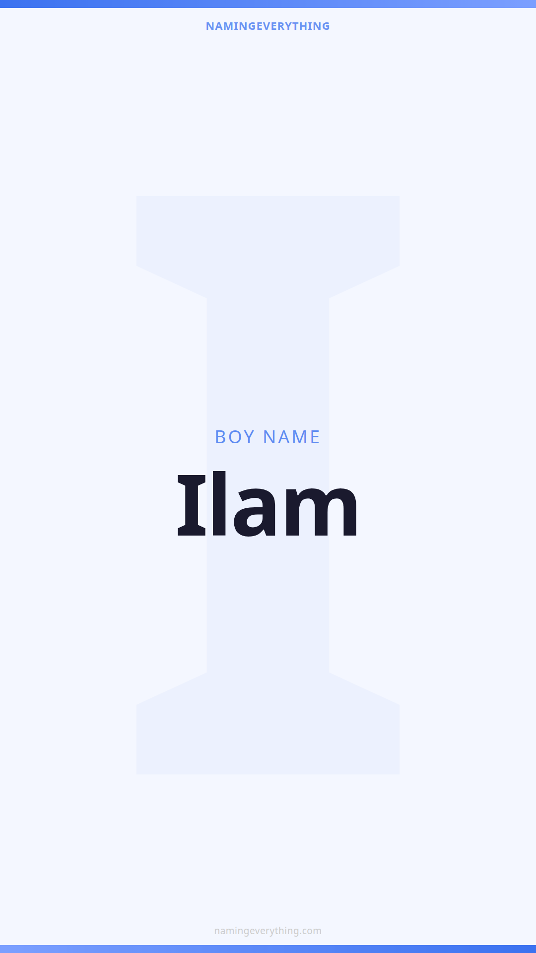 Download a shareable image with Ilam's meaning, origin, and popularity. Ready for Instagram, Pinterest, or texting to your partner.