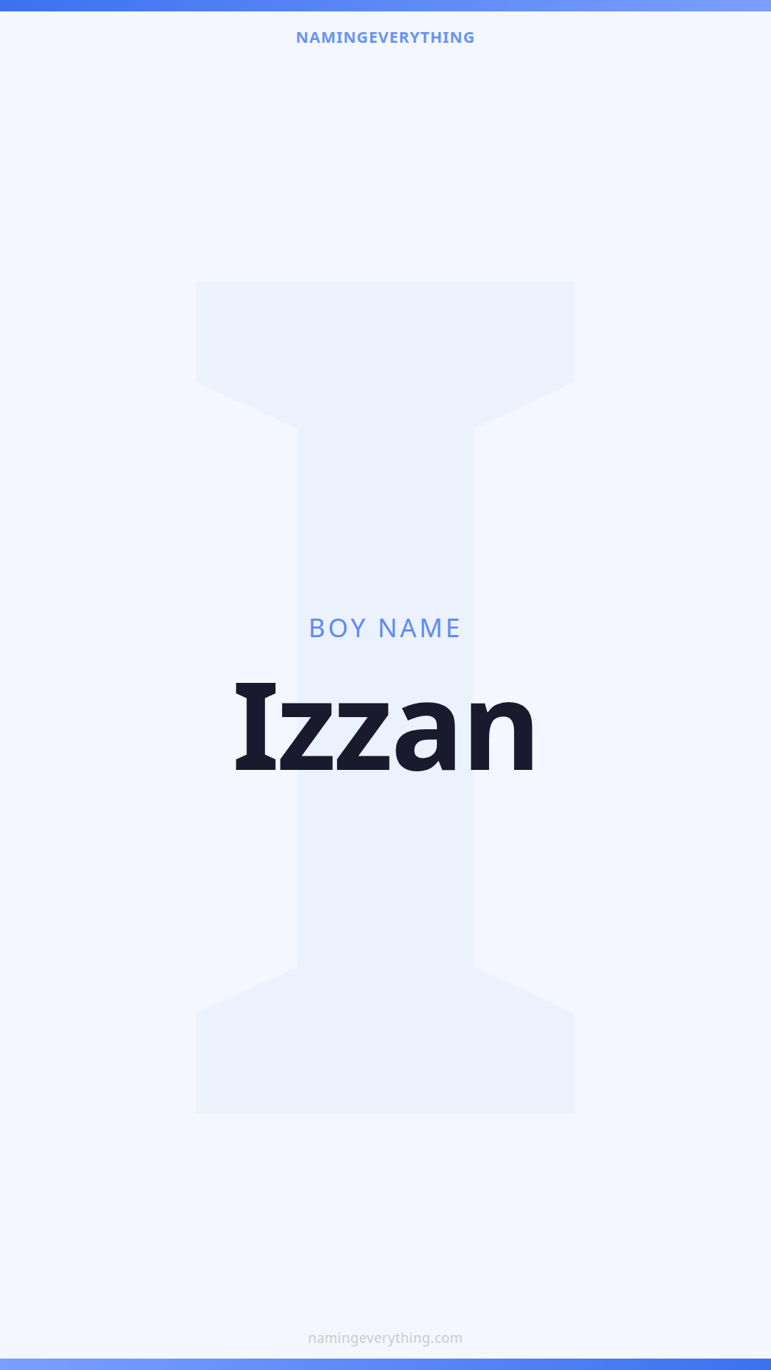 Download a shareable image with Izzan's meaning, origin, and popularity. Ready for Instagram, Pinterest, or texting to your partner.