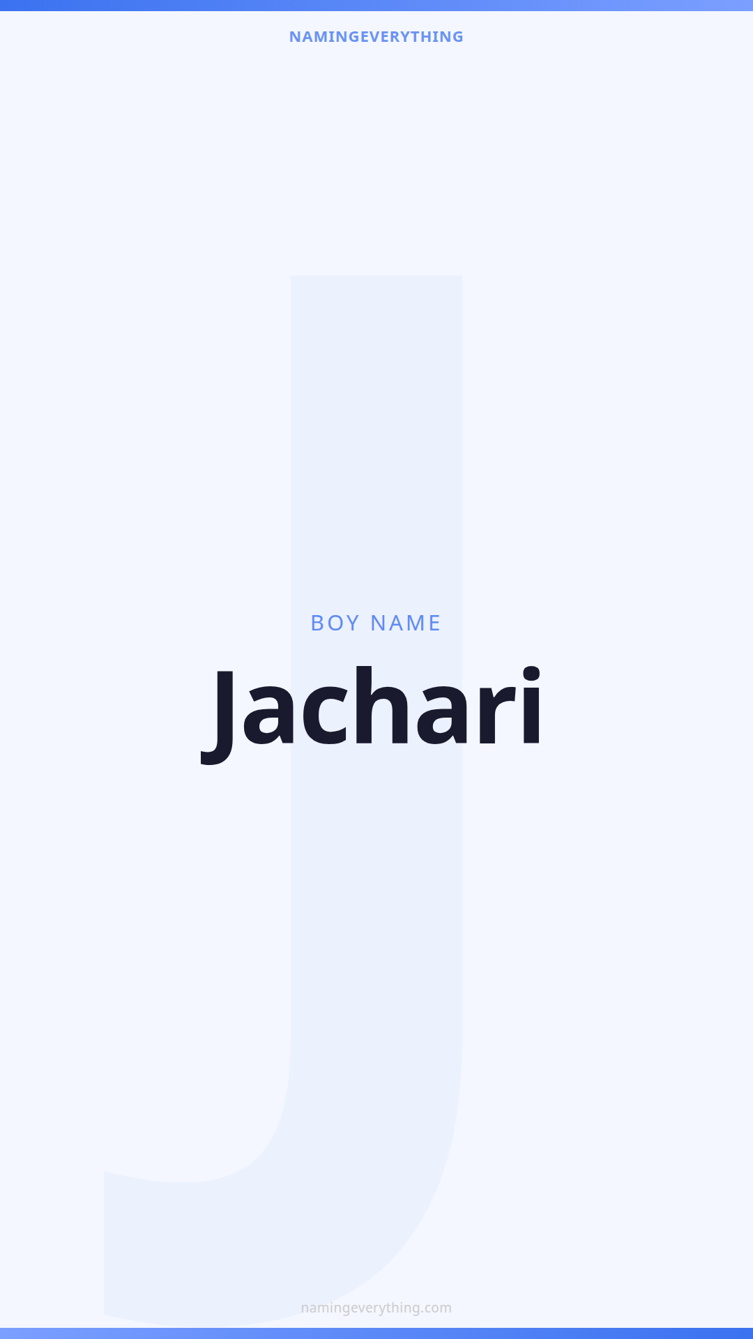 Download a shareable image with Jachari's meaning, origin, and popularity. Ready for Instagram, Pinterest, or texting to your partner.