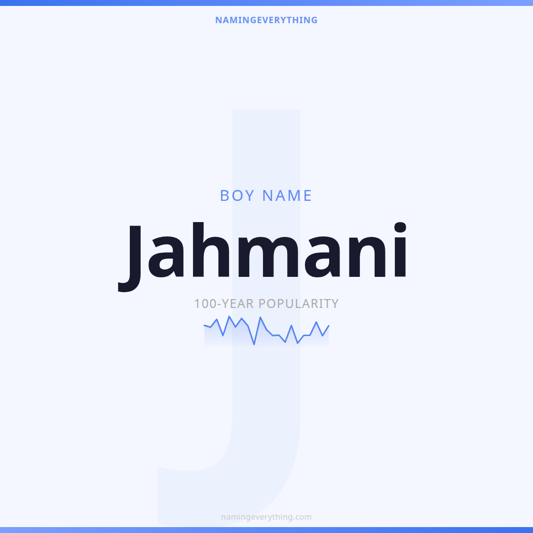 Download a shareable image with Jahmani's meaning, origin, and popularity. Ready for Instagram, Pinterest, or texting to your partner.
