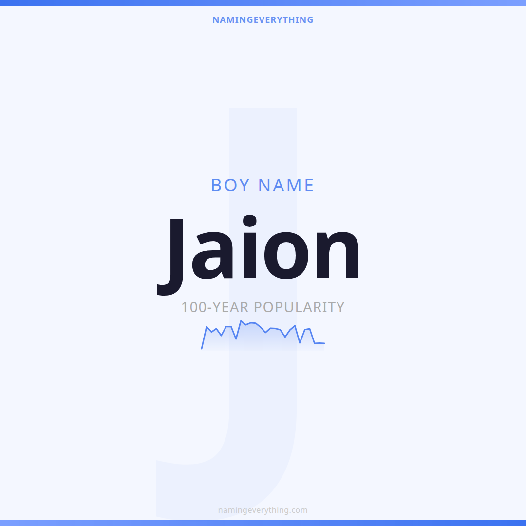 Download a shareable image with Jaion's meaning, origin, and popularity. Ready for Instagram, Pinterest, or texting to your partner.