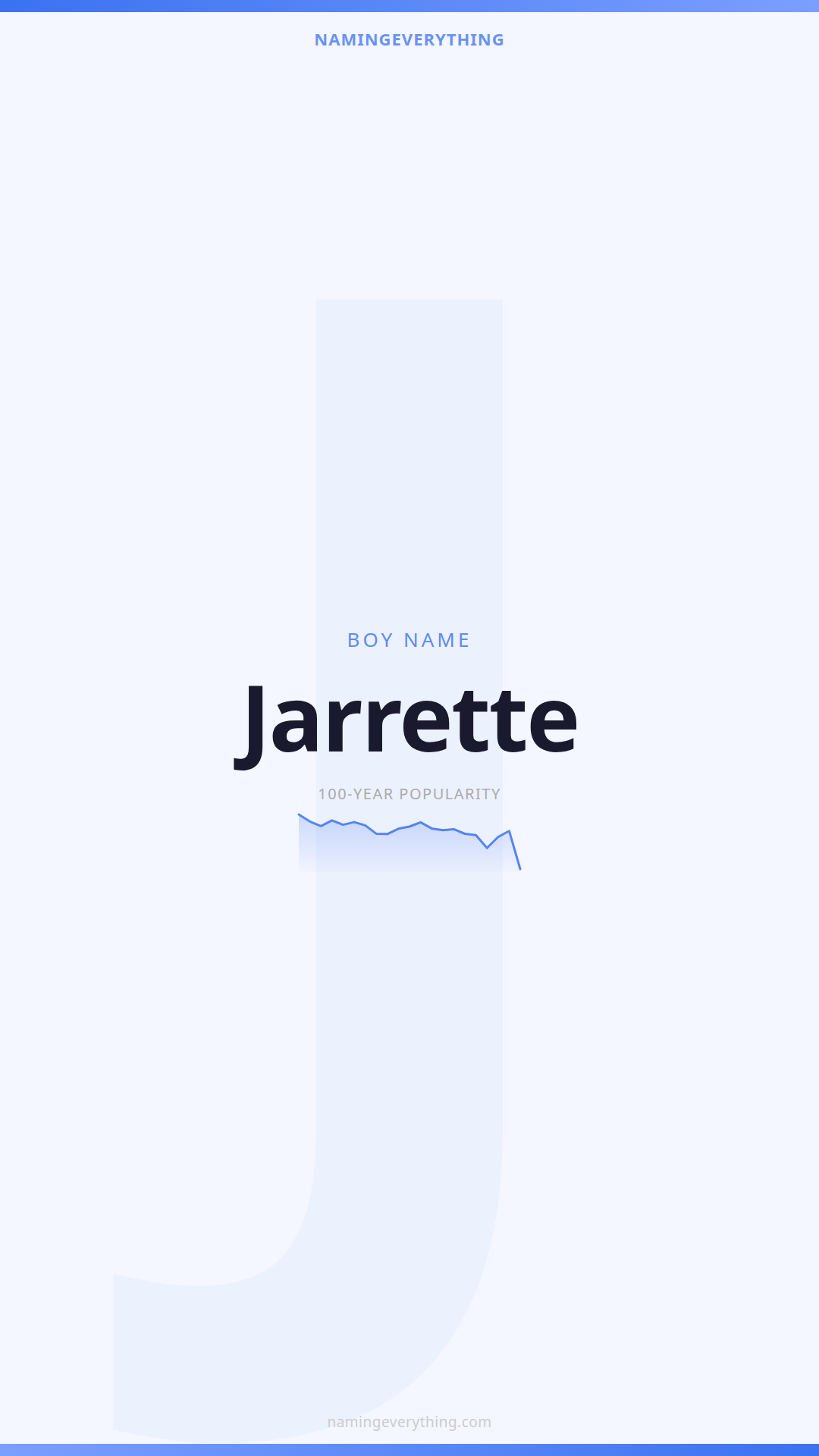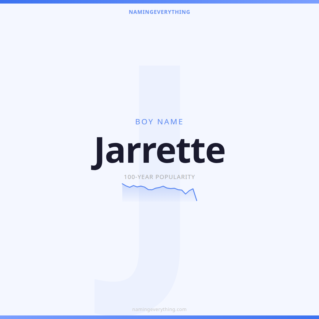 Download a shareable image with Jarrette's meaning, origin, and popularity. Ready for Instagram, Pinterest, or texting to your partner.