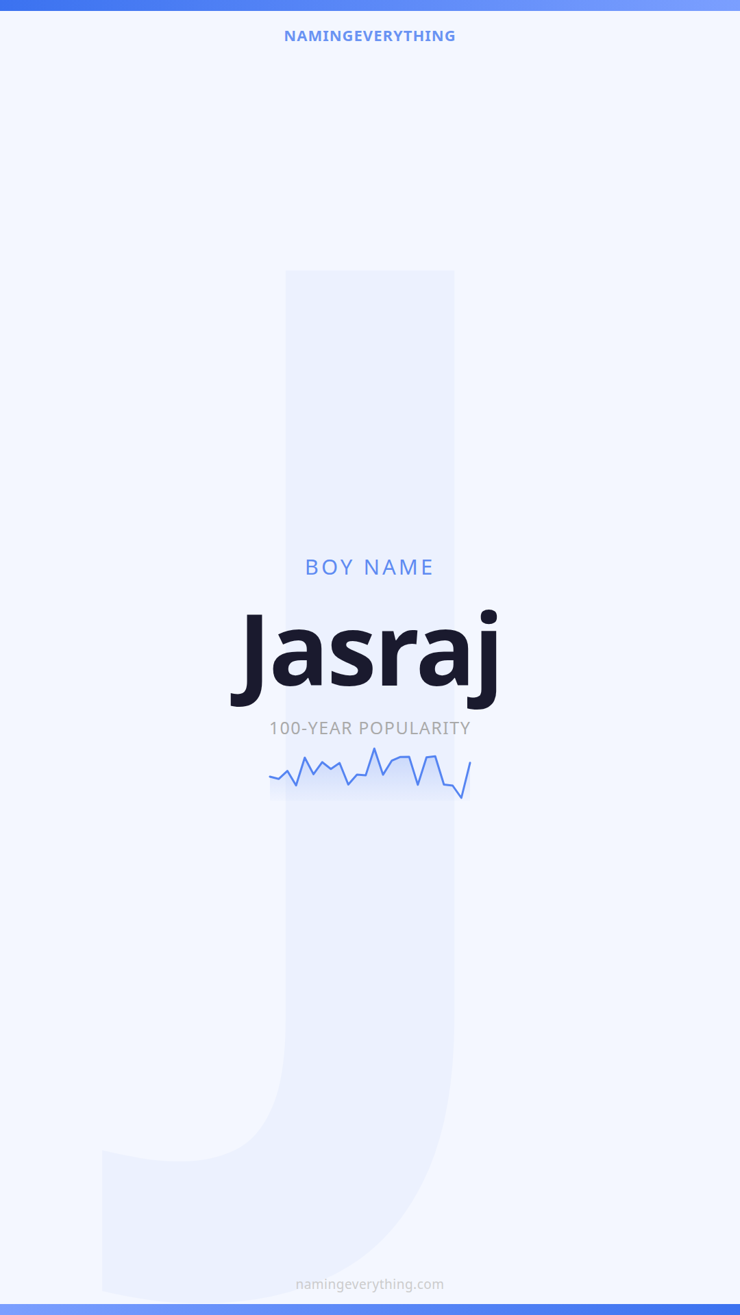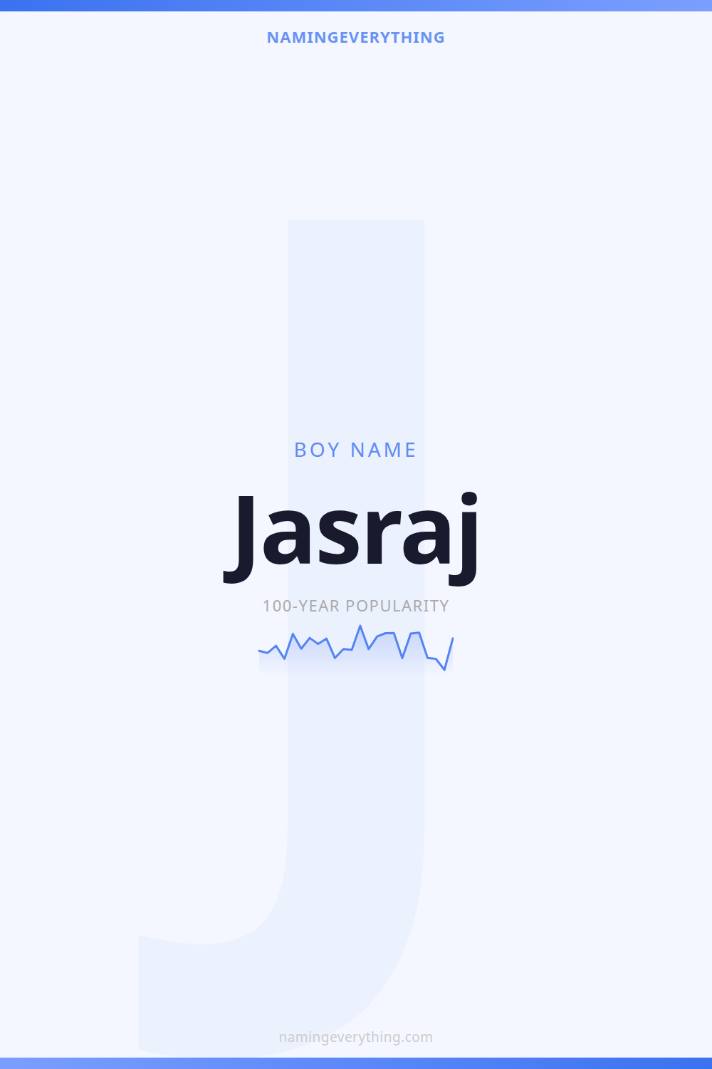 Download a shareable image with Jasraj's meaning, origin, and popularity. Ready for Instagram, Pinterest, or texting to your partner.