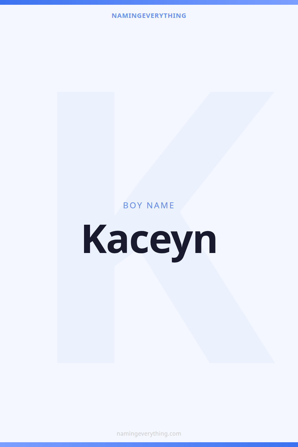Download a shareable image with Kaceyn's meaning, origin, and popularity. Ready for Instagram, Pinterest, or texting to your partner.