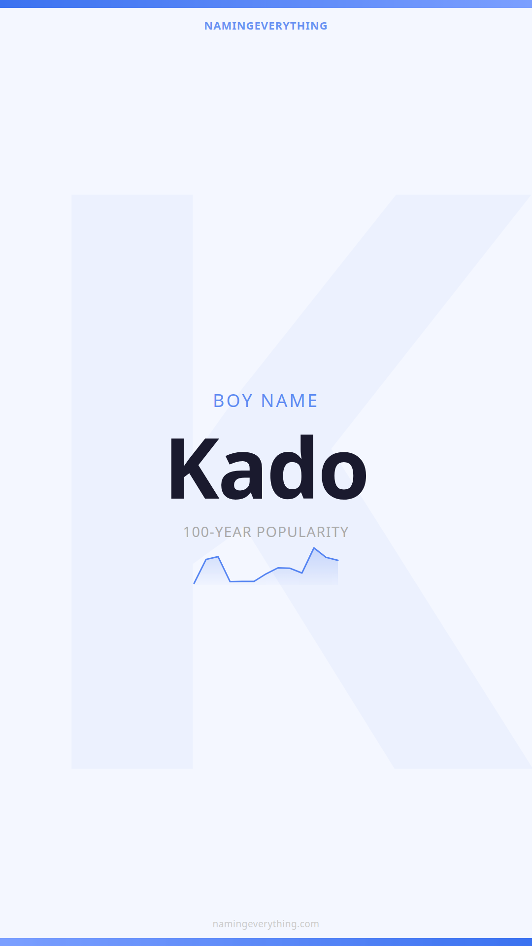 Download a shareable image with Kado's meaning, origin, and popularity. Ready for Instagram, Pinterest, or texting to your partner.