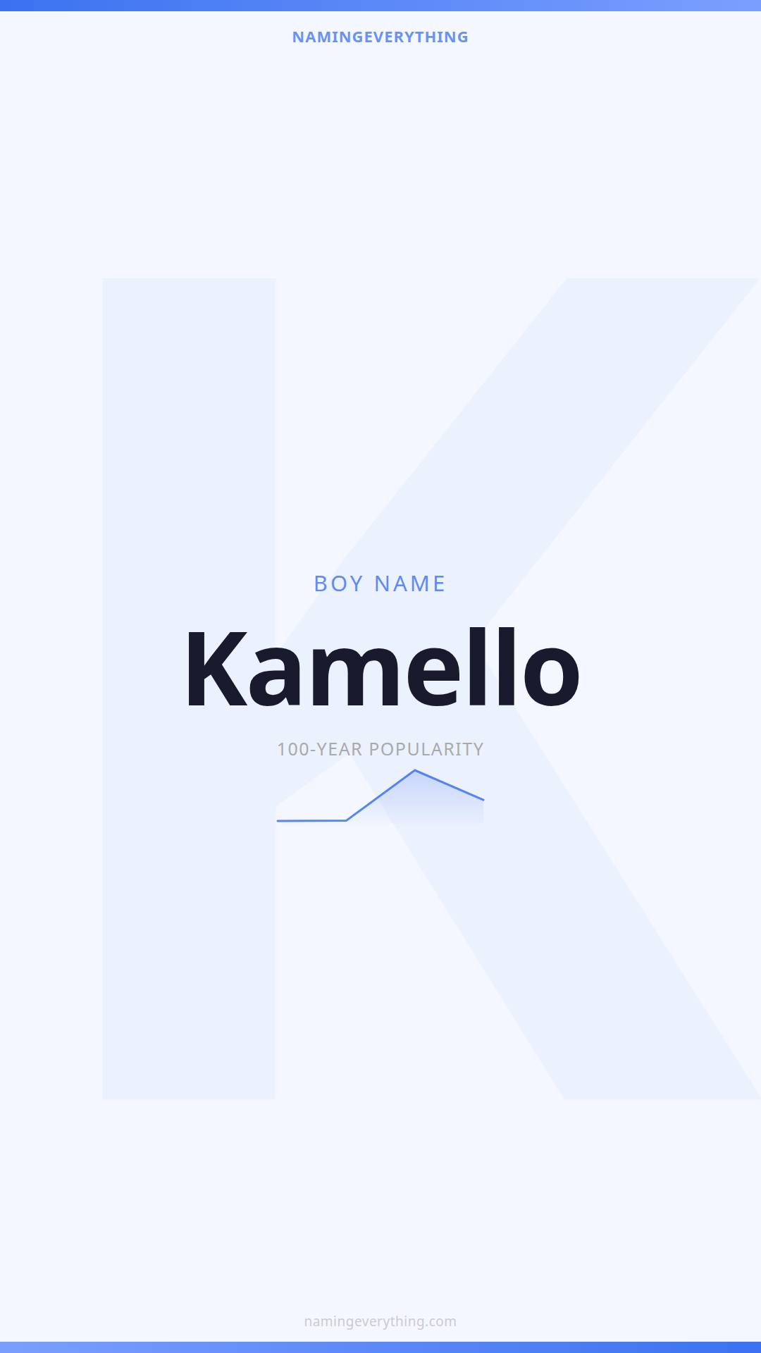Download a shareable image with Kamello's meaning, origin, and popularity. Ready for Instagram, Pinterest, or texting to your partner.