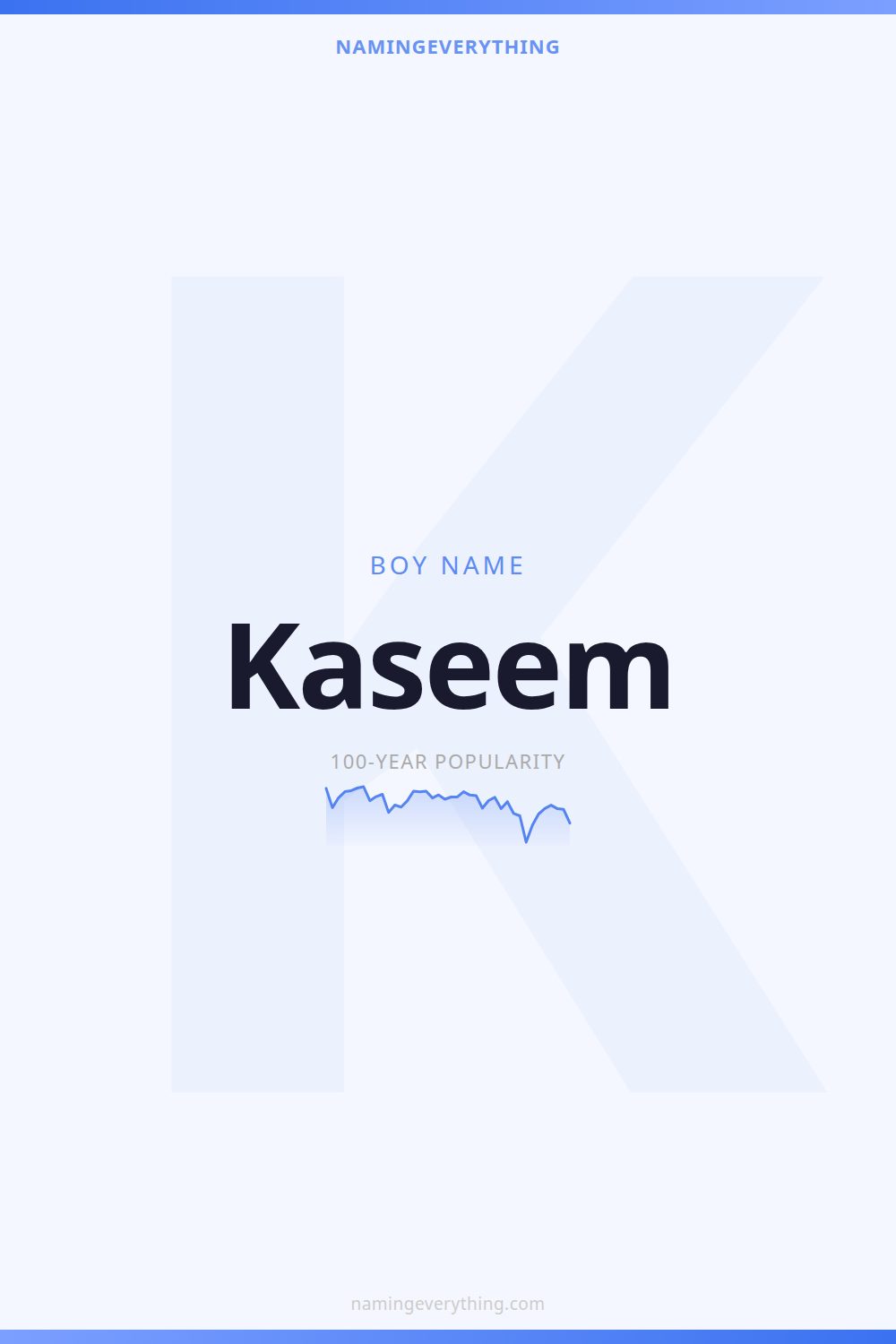 Download a shareable image with Kaseem's meaning, origin, and popularity. Ready for Instagram, Pinterest, or texting to your partner.