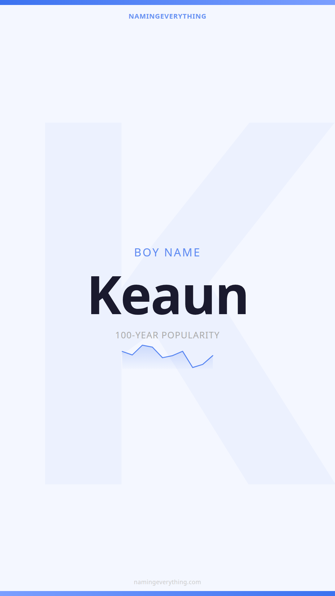 Download a shareable image with Keaun's meaning, origin, and popularity. Ready for Instagram, Pinterest, or texting to your partner.