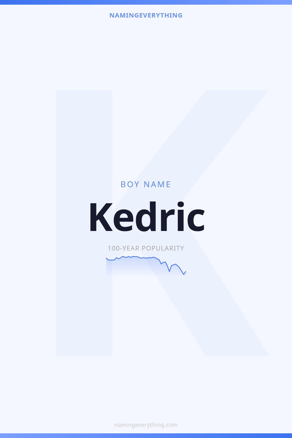 Download a shareable image with Kedric's meaning, origin, and popularity. Ready for Instagram, Pinterest, or texting to your partner.