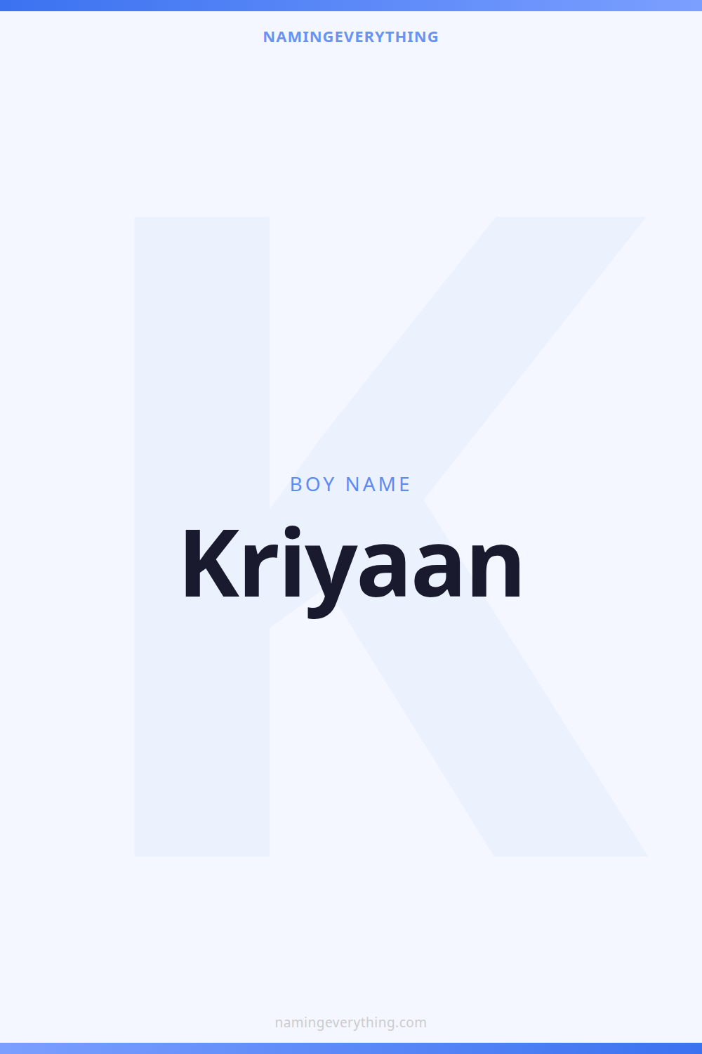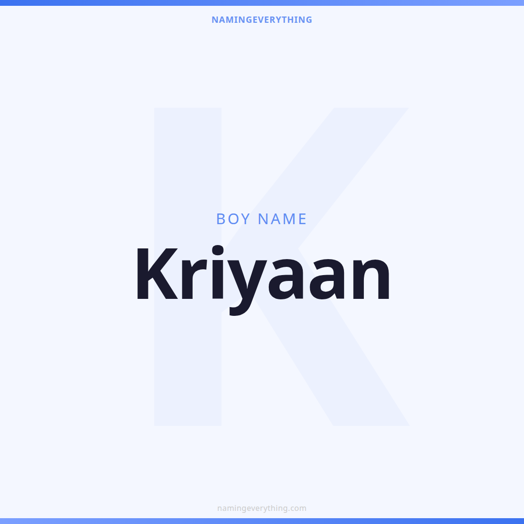 Download a shareable image with Kriyaan's meaning, origin, and popularity. Ready for Instagram, Pinterest, or texting to your partner.